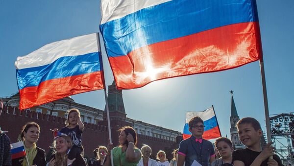 全俄社会舆论研究中心在俄国旗日(8月22日)前夕表示,近67%俄罗斯人看到本国国旗感到骄傲自豪,69%看到国徽感到骄傲自豪,而听到国歌感到骄傲自豪的俄罗斯人达到72%。