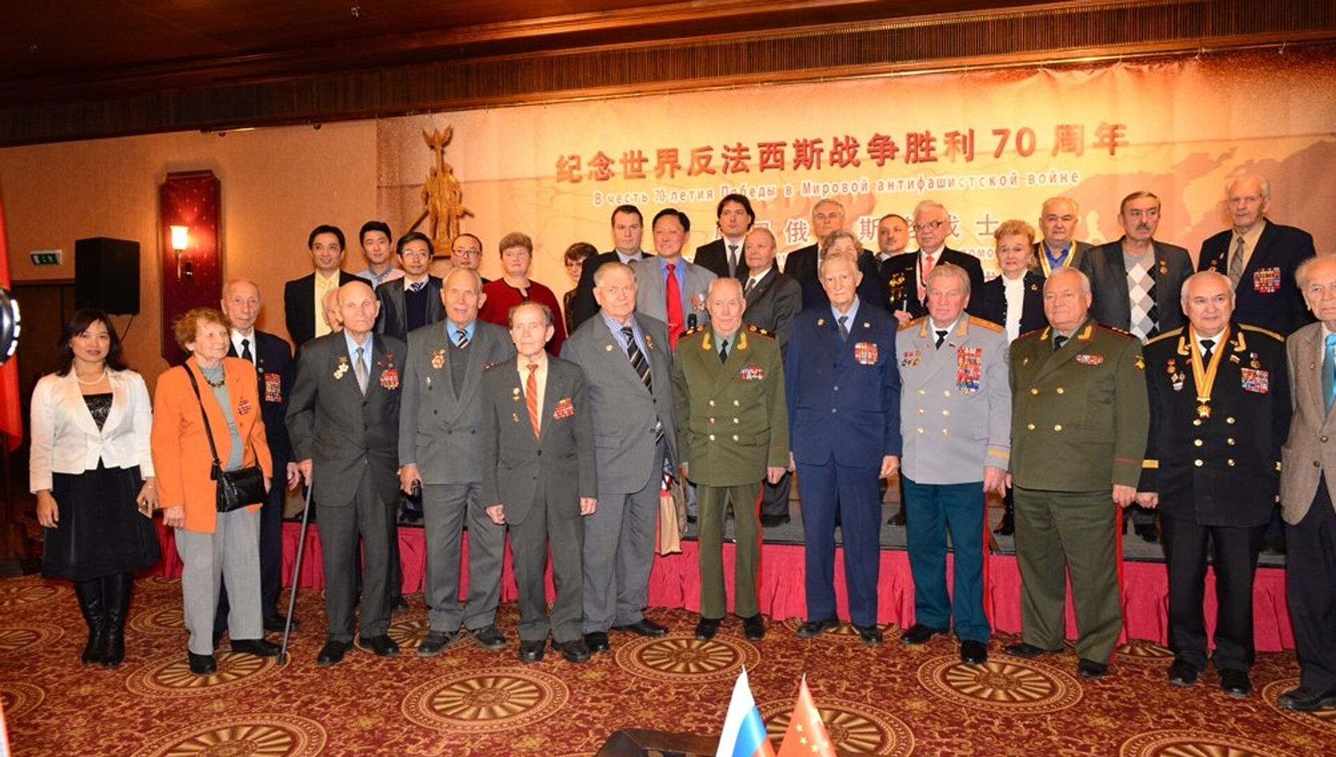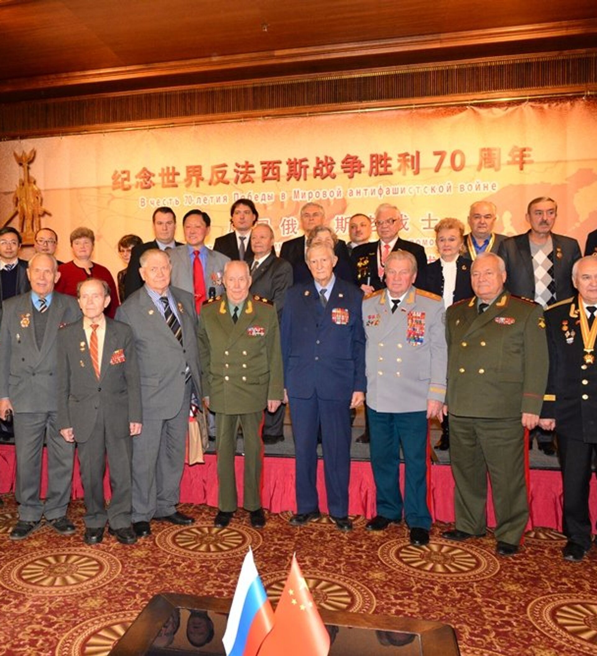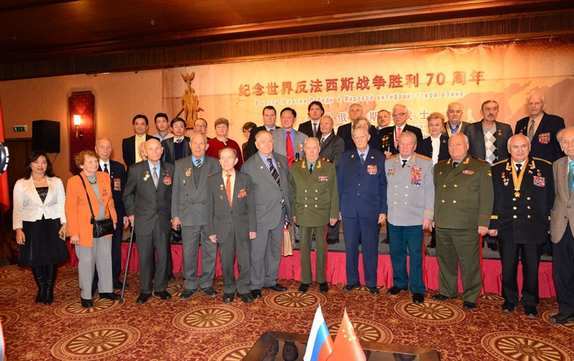 在俄罗斯首都总统饭店的红色大厅里,老战士们和已故老战士的儿孙们欢聚一堂,相互问候,亲切拥抱。参加此次活动的老战士中年纪最大的93岁高龄,仍然精神矍铄,神采奕奕。