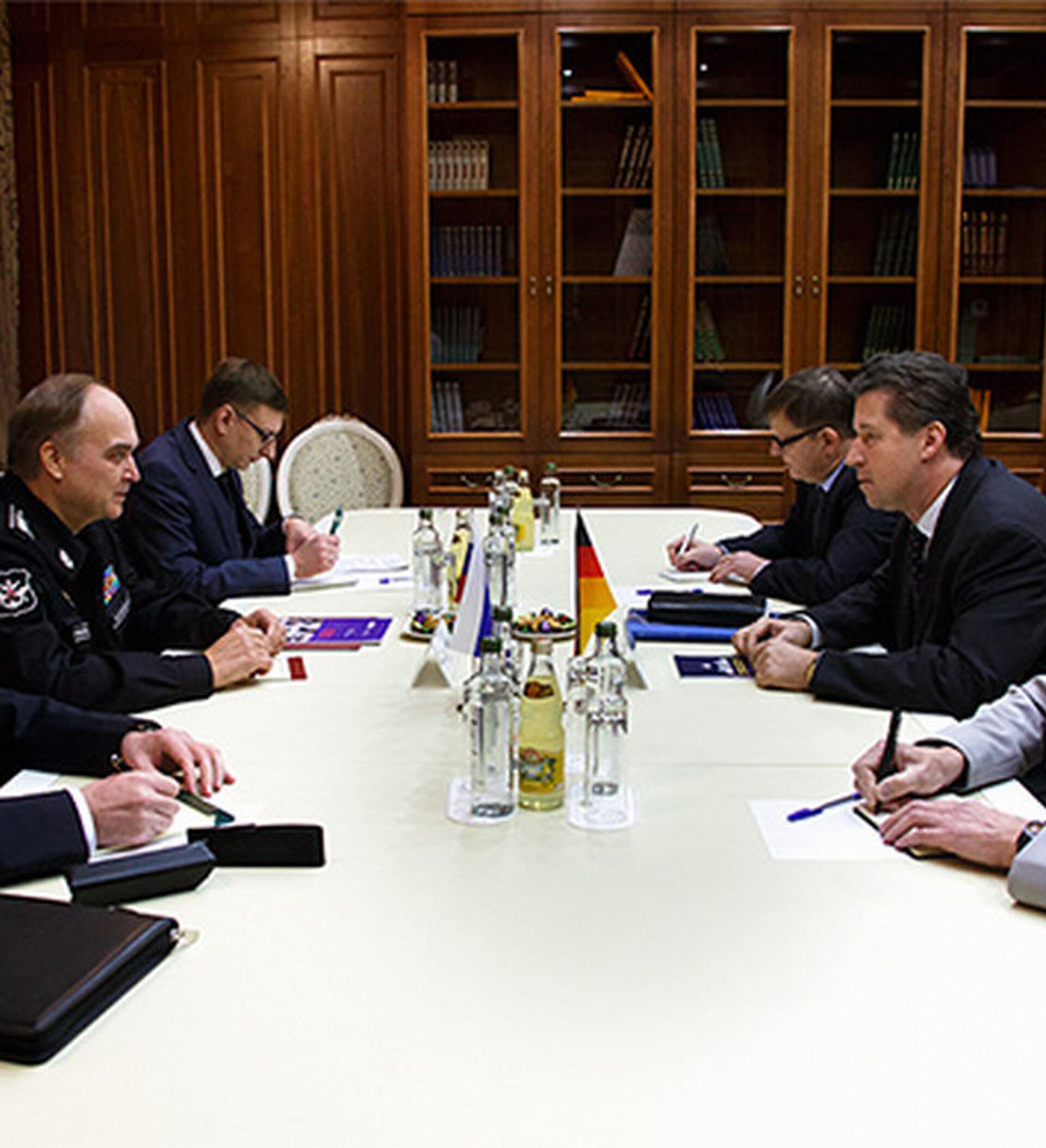 俄罗斯国防部新闻处周三称,俄罗斯国防部副部长阿纳托利•安东诺夫与德国国防部政治部负责人格扎•冯•盖尔(Geza Von Ghayr)就协调打击国际恐怖主义的努力进行了讨论。