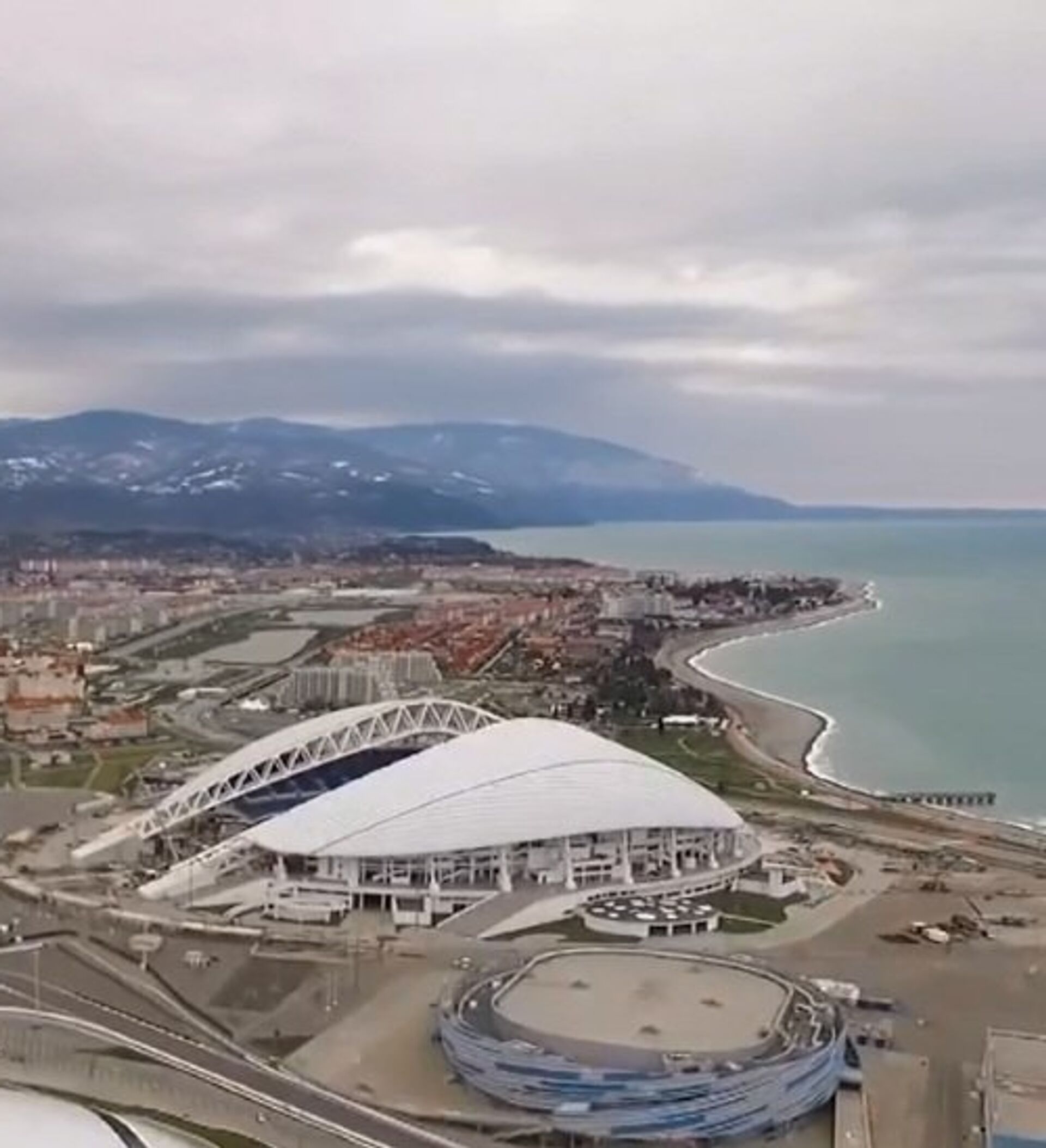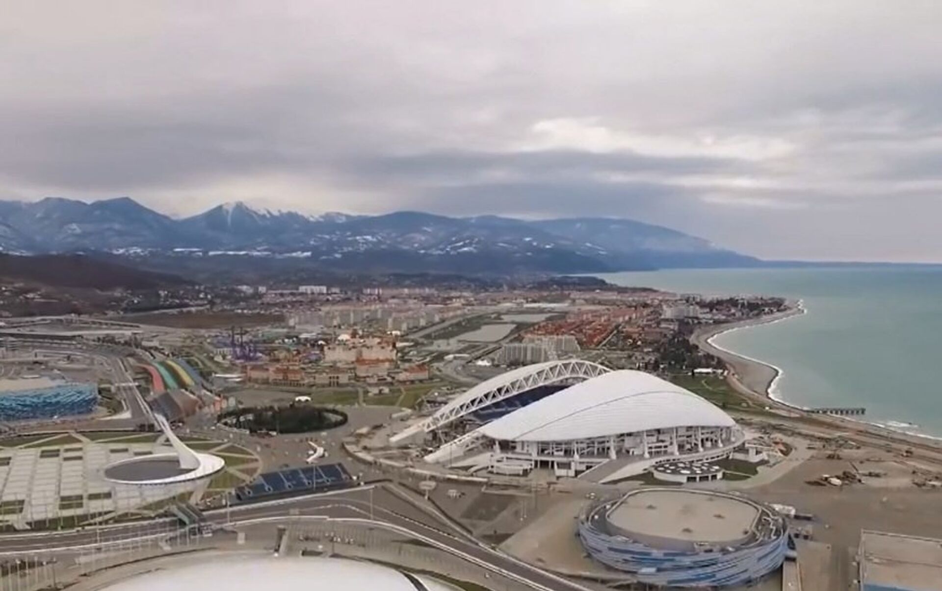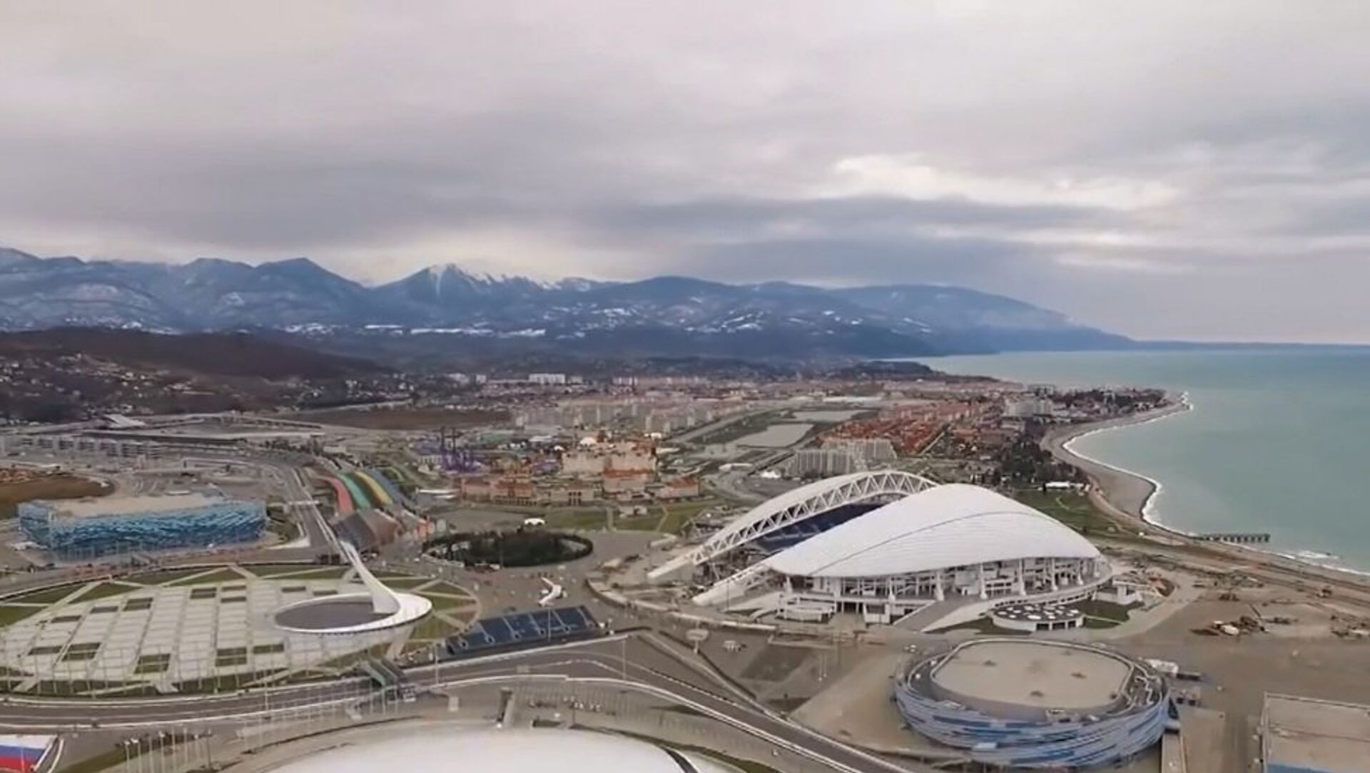 无人机从上空拍摄第22届冬奥会举办城市、俄罗斯度假胜地索契。 2016年3月15日, 俄罗斯卫星通讯社