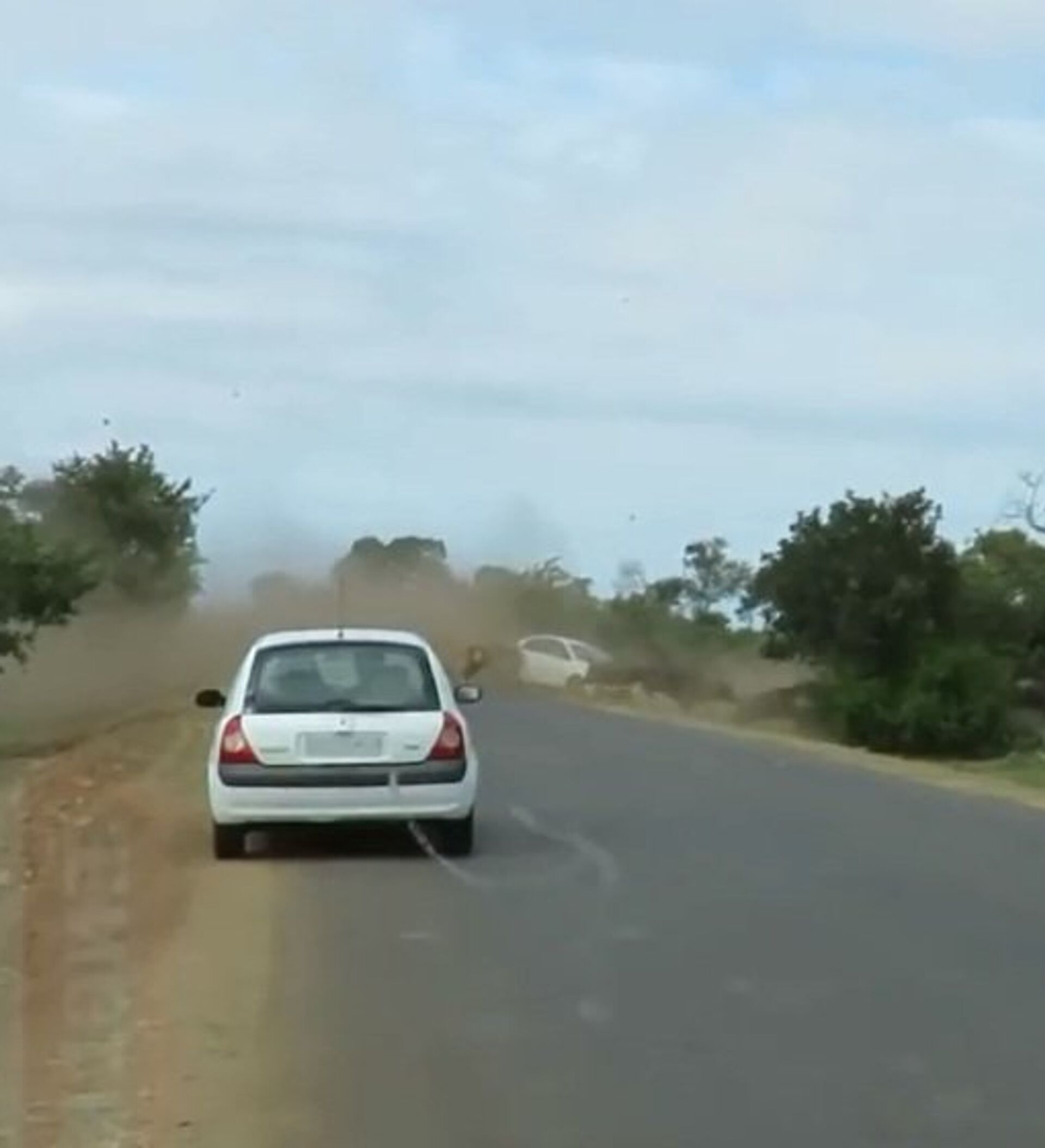 狮口逃生的牛群差点掀翻了游客汽车。