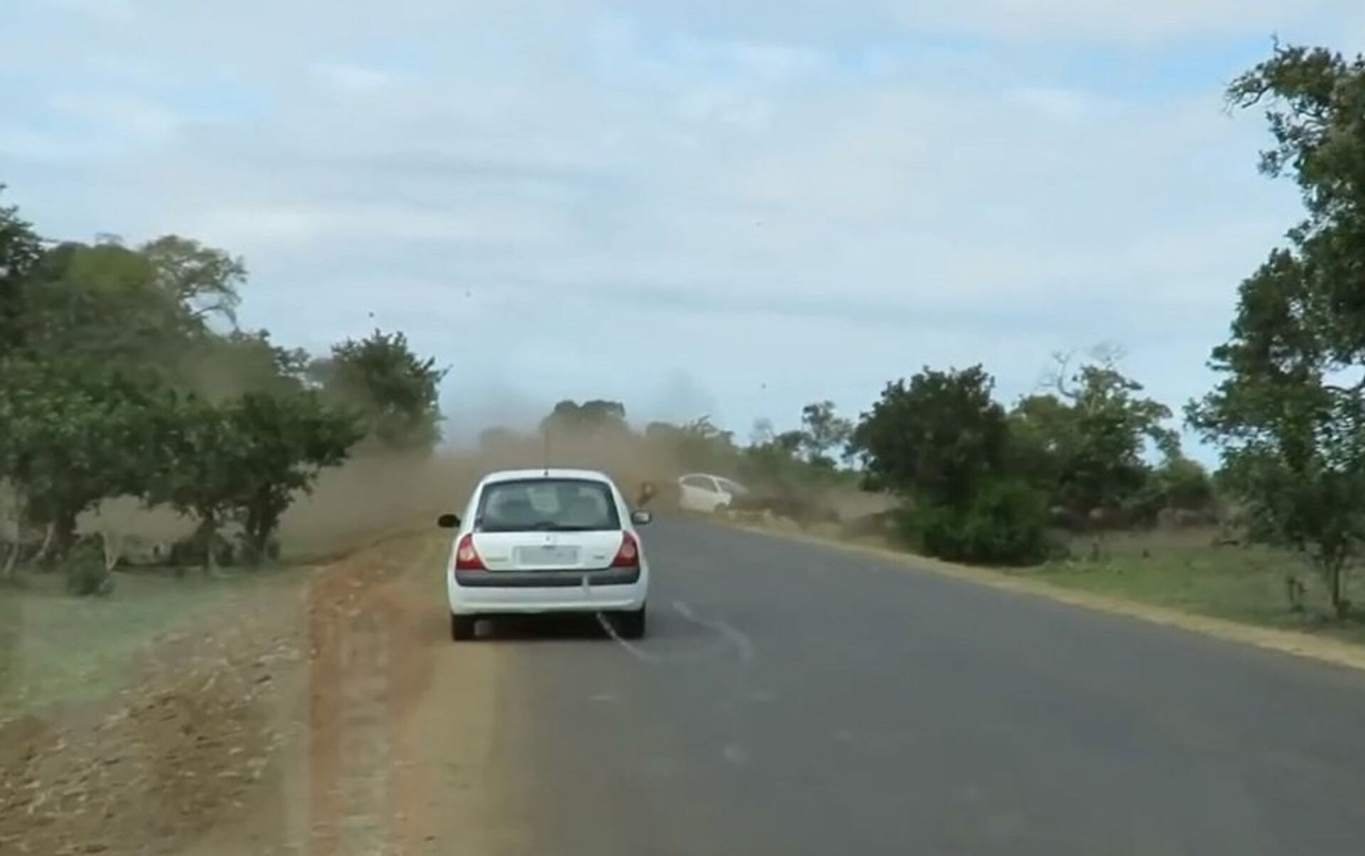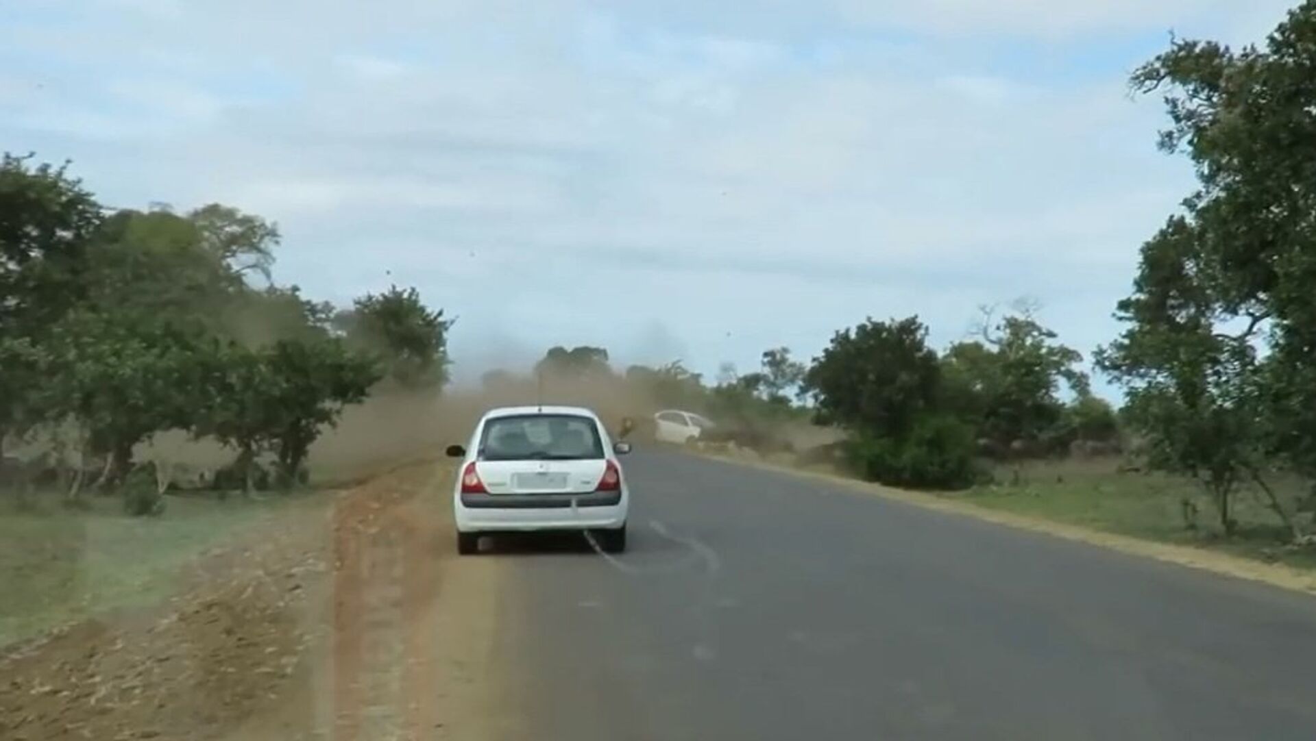狮口逃生的牛群差点掀翻了游客汽车。 2016年5月17日, 俄罗斯卫星通讯社