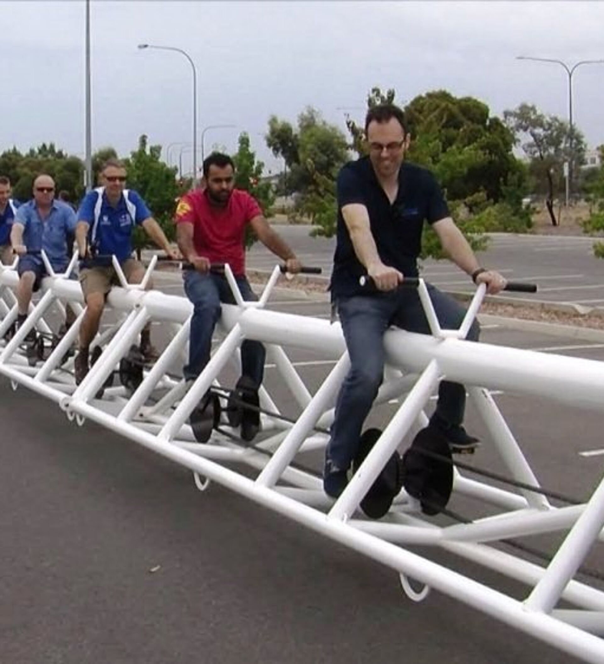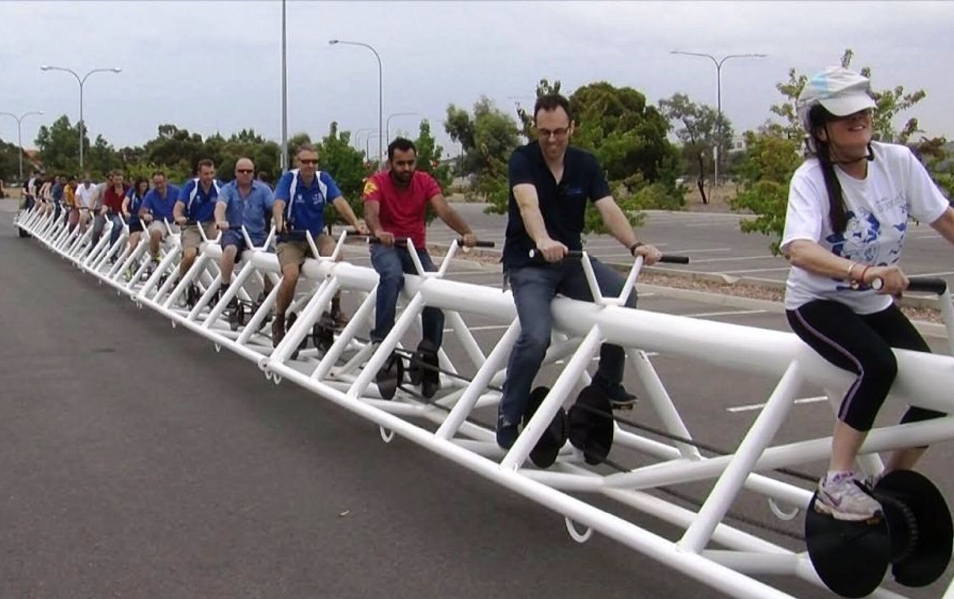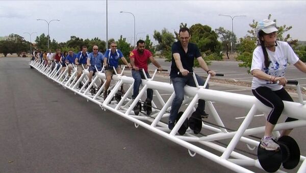 澳大利亚阿德莱德的大学生工厂工程师们做出了世界上最长的自行车,它长41米,重3吨。 2016年9月19日, 俄罗斯卫星通讯社