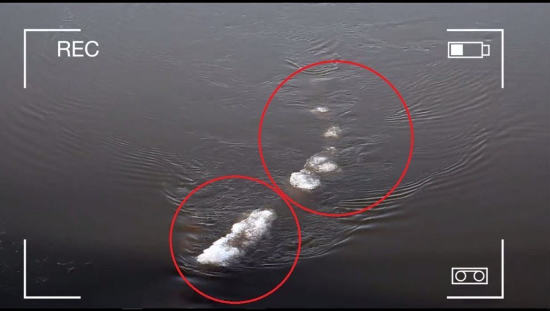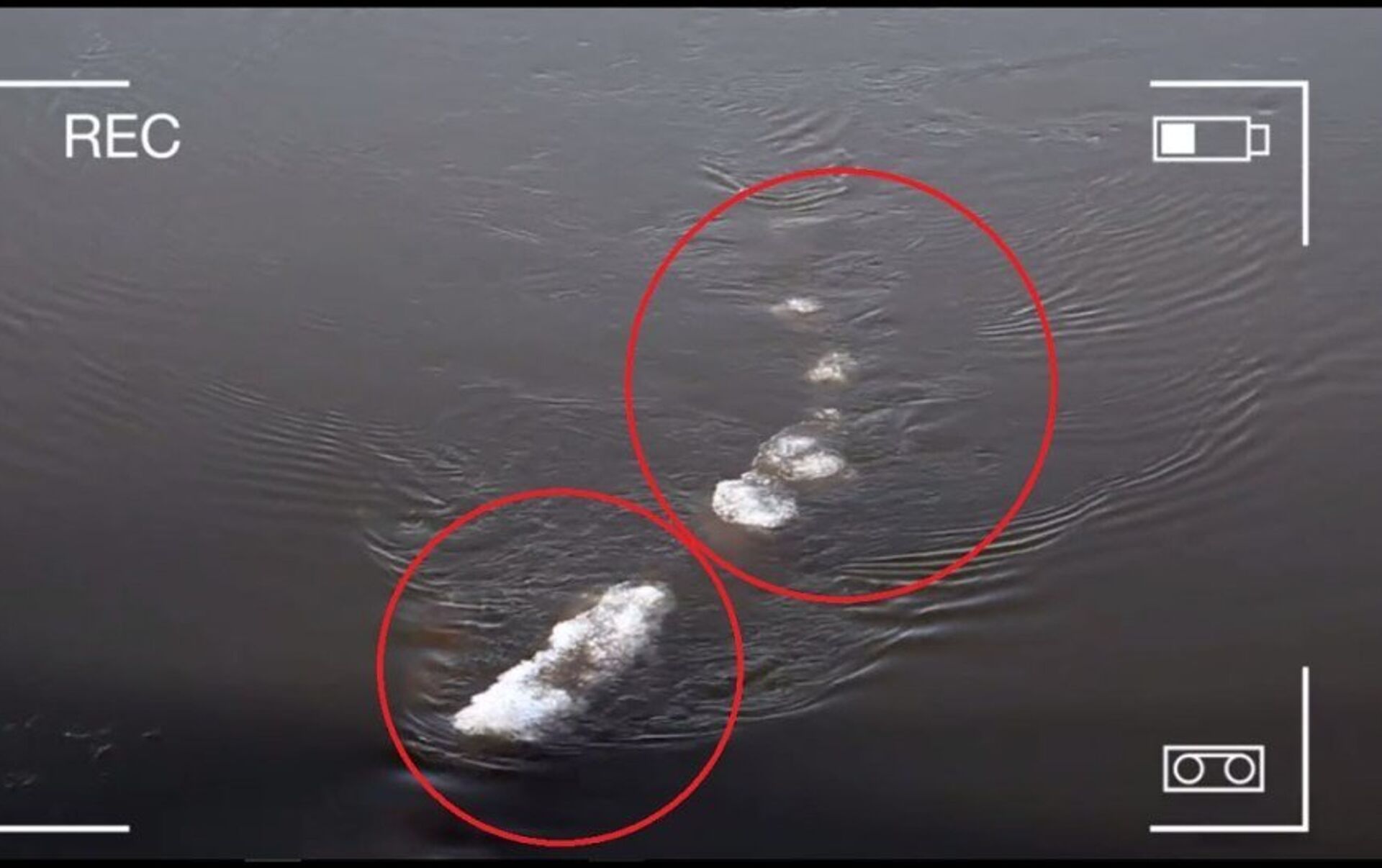 美国阿拉斯加州费尔班斯克地区土地资源管理局工作人员检查塞纳河上的冰时意外拍摄到一种奇怪的生物,它藏身于冰下,看起来像一条鳄鱼,沿着河向上游动。视频发布在土地资源管理局的主页上,在媒体上引起不小轰动。