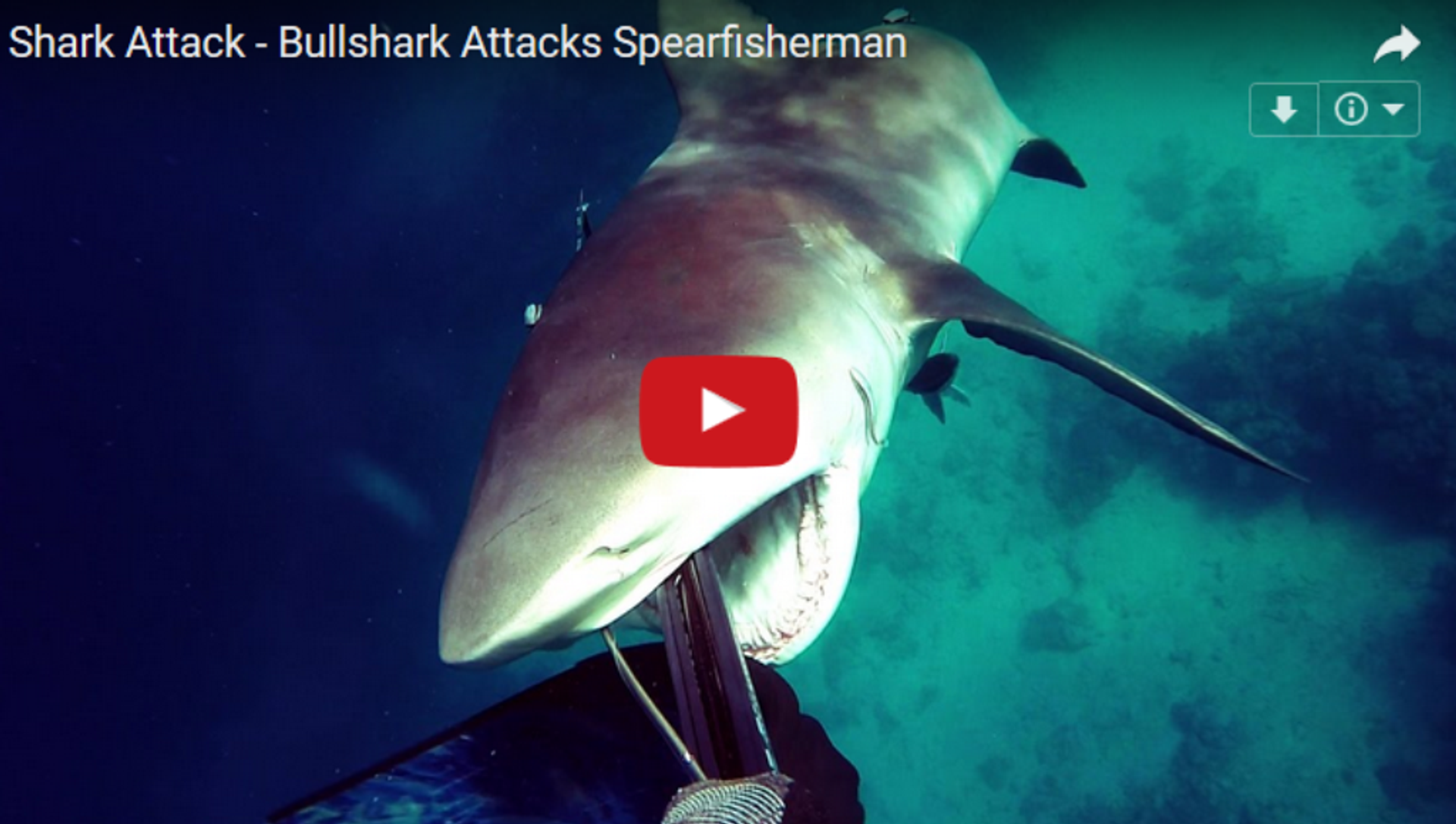 视频网站YouTube网友Liquid Vision上传一段潜水者与鲨鱼博斗的视频。事故发生在澳大利亚北昆士兰州海岸不远。潜水者在水下捕鱼时意外被一条牛鲨攻击。潜水者成功将鱼叉插入鲨鱼张开的大嘴,得以逃脱。