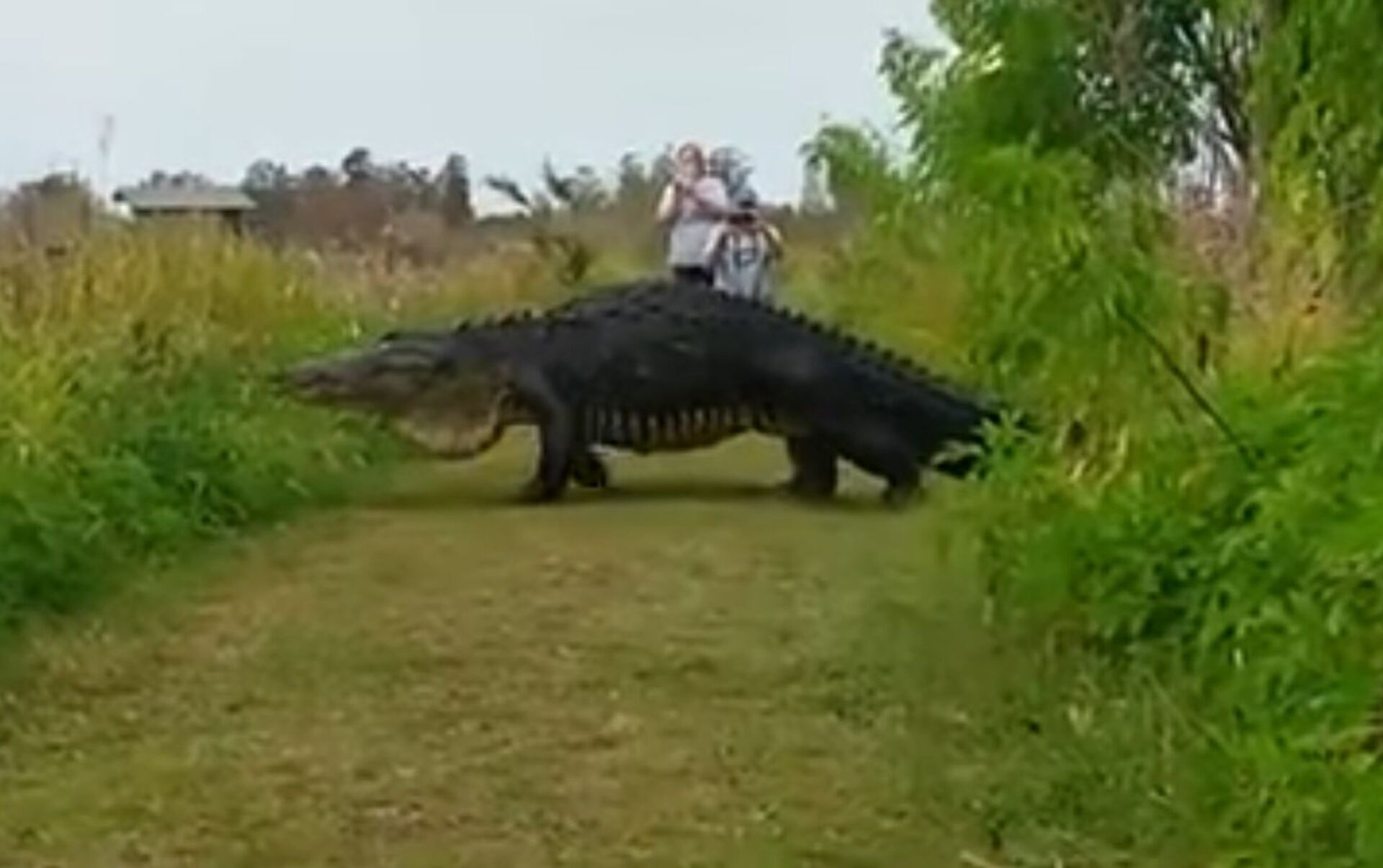 2017年1月18日, 00:33 (更新: 2021年12月21日, 16:25) 沿着佛罗里达州国家公园的一条路游览的游客遇到了一只巨大的短吻鳄。目测这只大鳄大约长5米。这种短吻鳄可重达半吨。