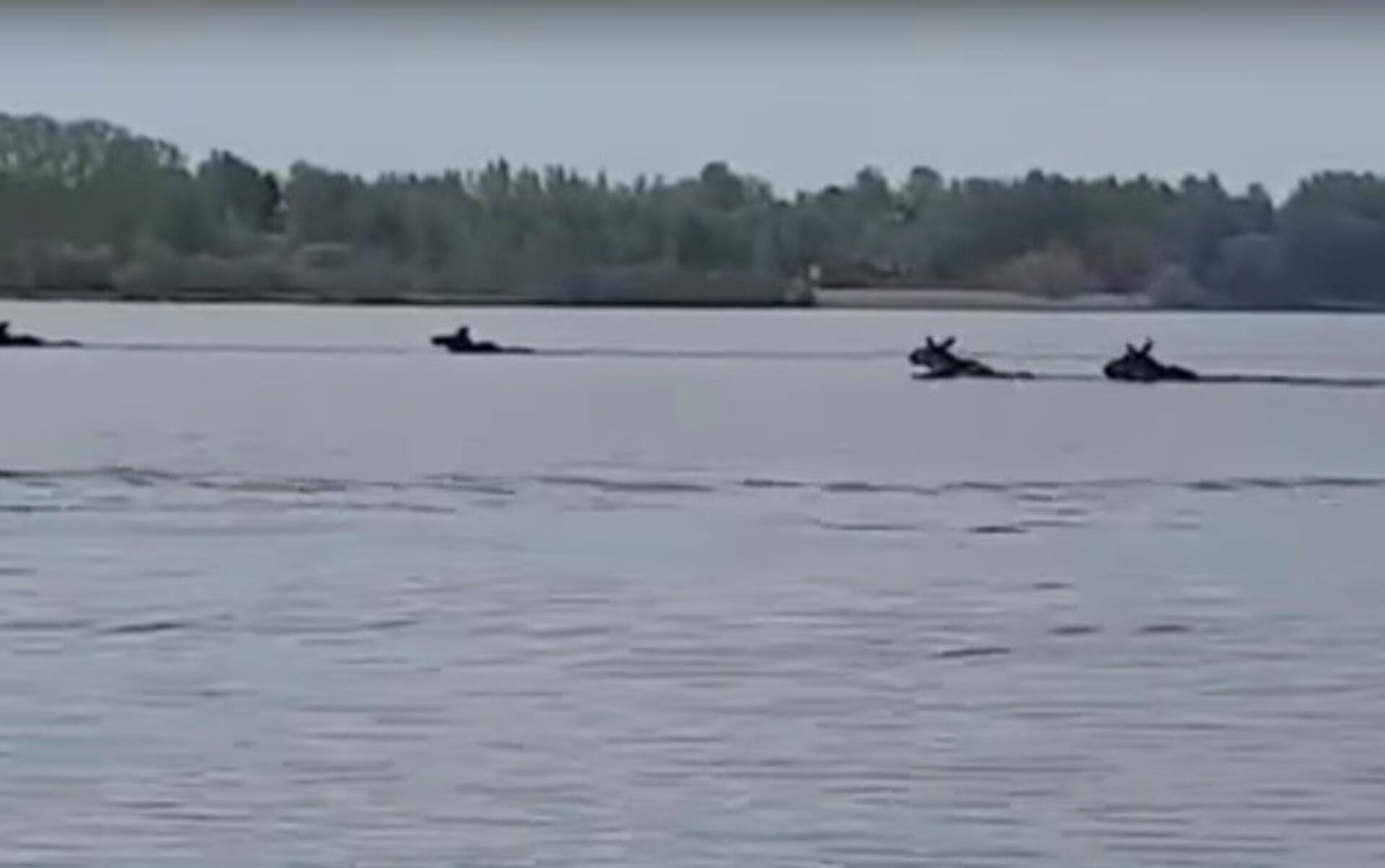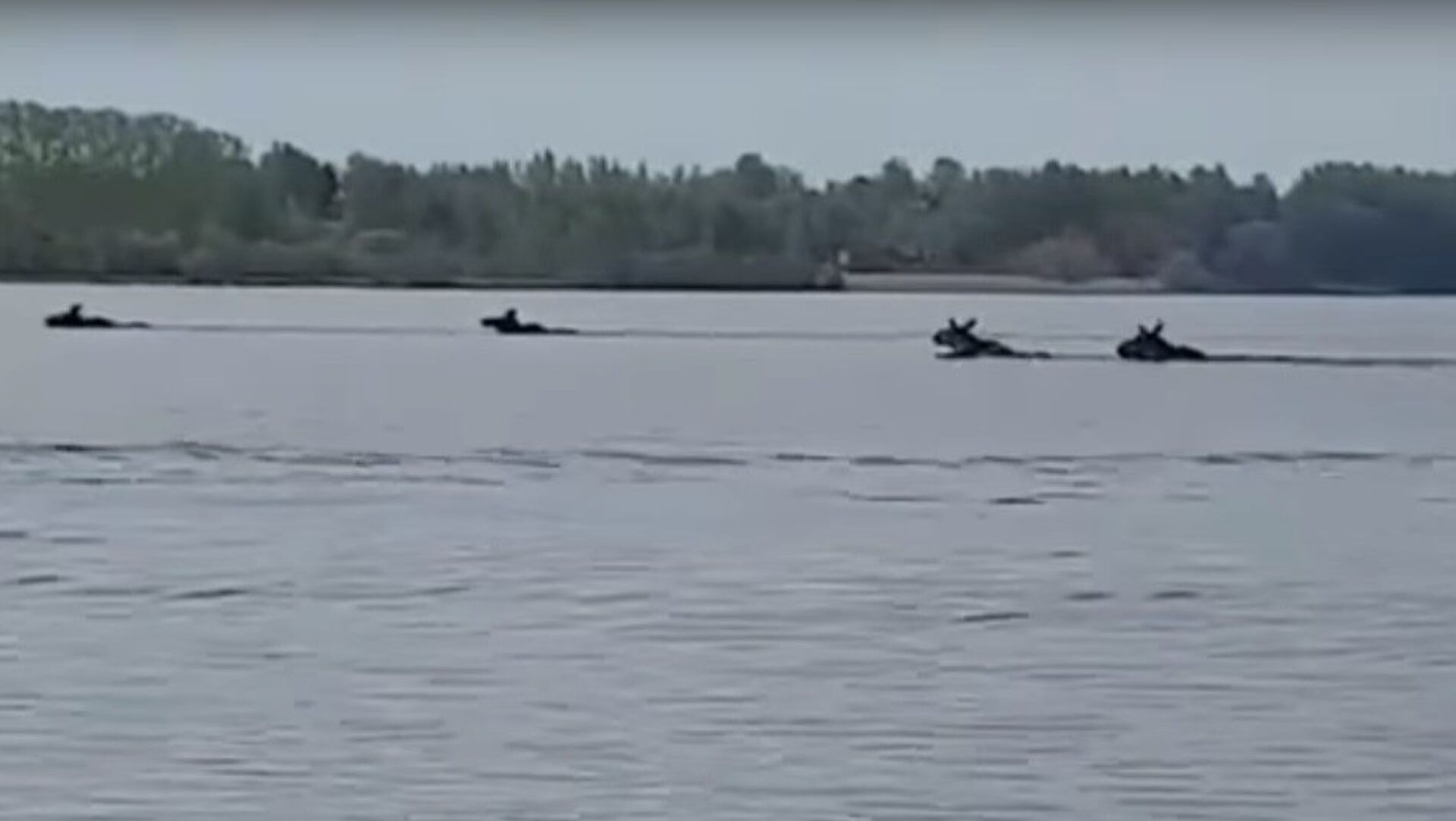 一群麋鹿正在横渡宽阔的伏尔加河面。 2017年5月23日, 俄罗斯卫星通讯社
