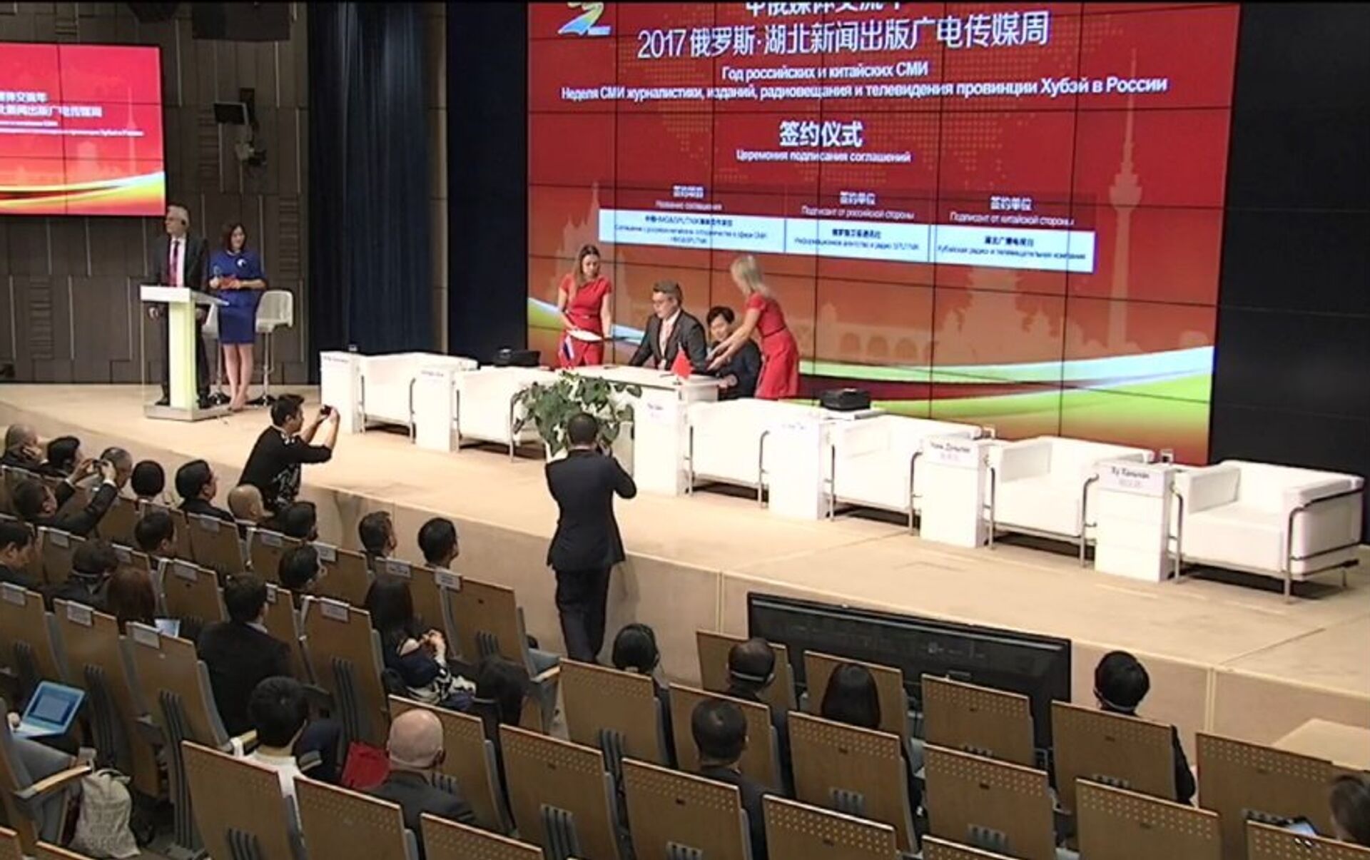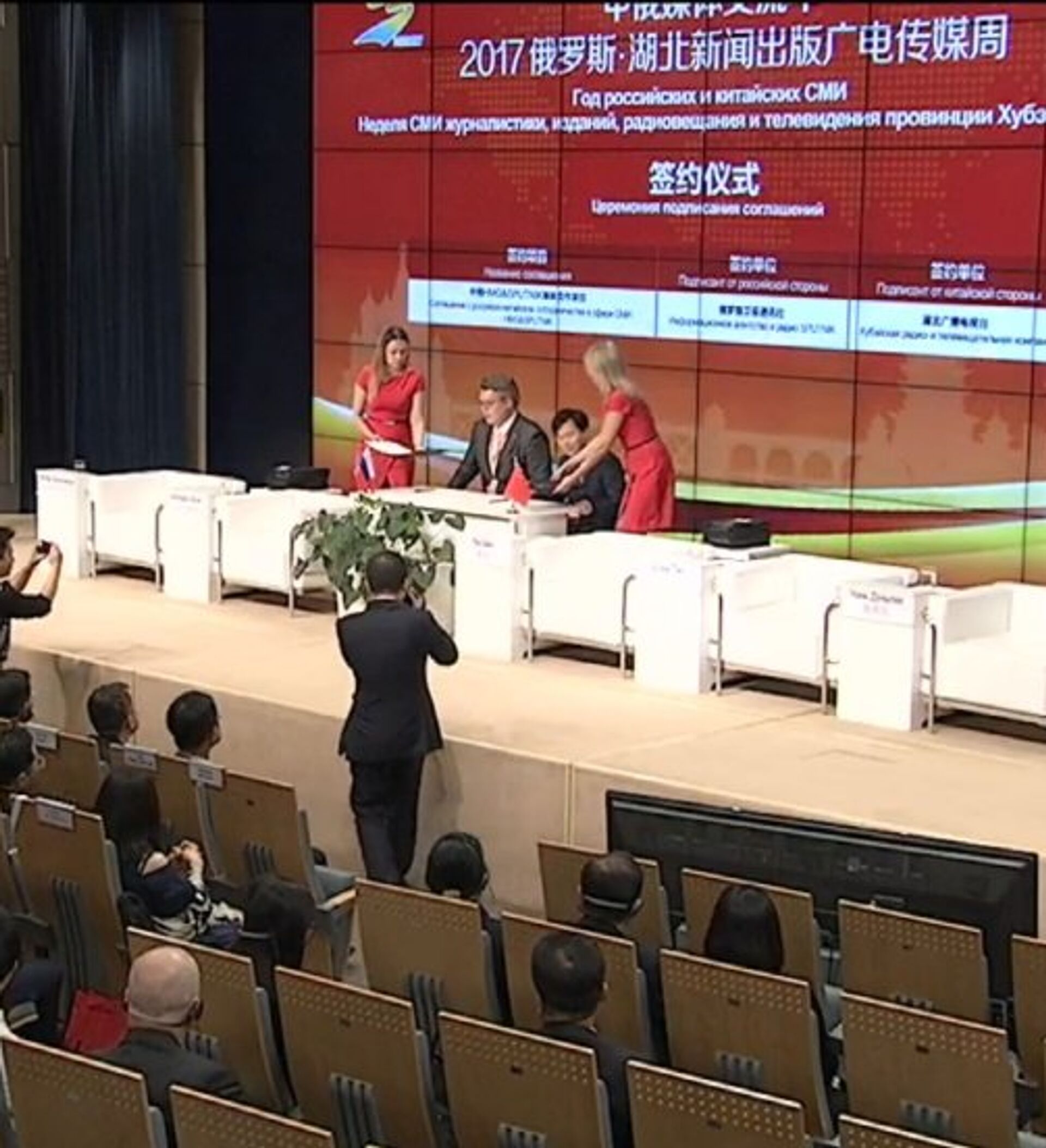 签约仪式在2017年俄罗斯“湖北新闻出版广电传媒周”活动框架内,在俄罗斯卫星通讯社总部进行。