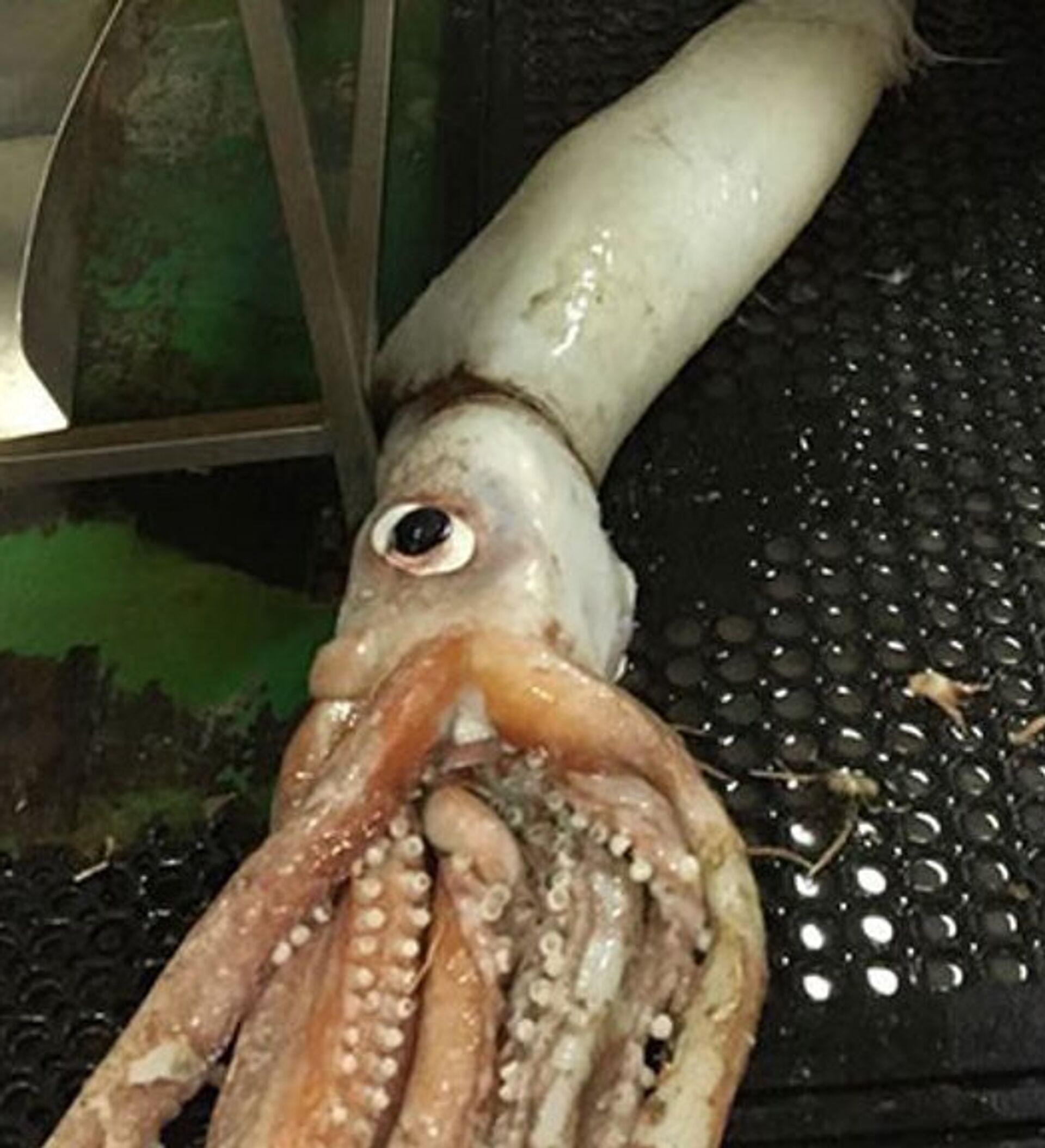 需要指出的是,这不是爱尔兰渔民捕获的第一只巨型乌贼。两个月前,渔民们还捕获了一只五米长的大乌蛤。