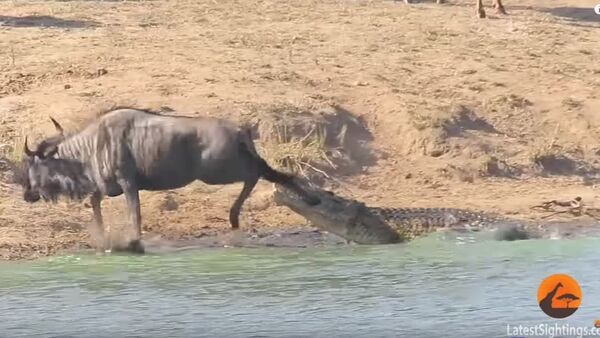 一位72岁游客在南非克鲁格国家公园拍下神奇一幕,一只饥饿的鳄鱼咬住牛羚的一条腿,想将其拖入水中。牛羚拼死挣扎,力气渐渐耗尽,绝望之际两只河马突然前来搭救。 2017年8月30日, 俄罗斯卫星通讯社