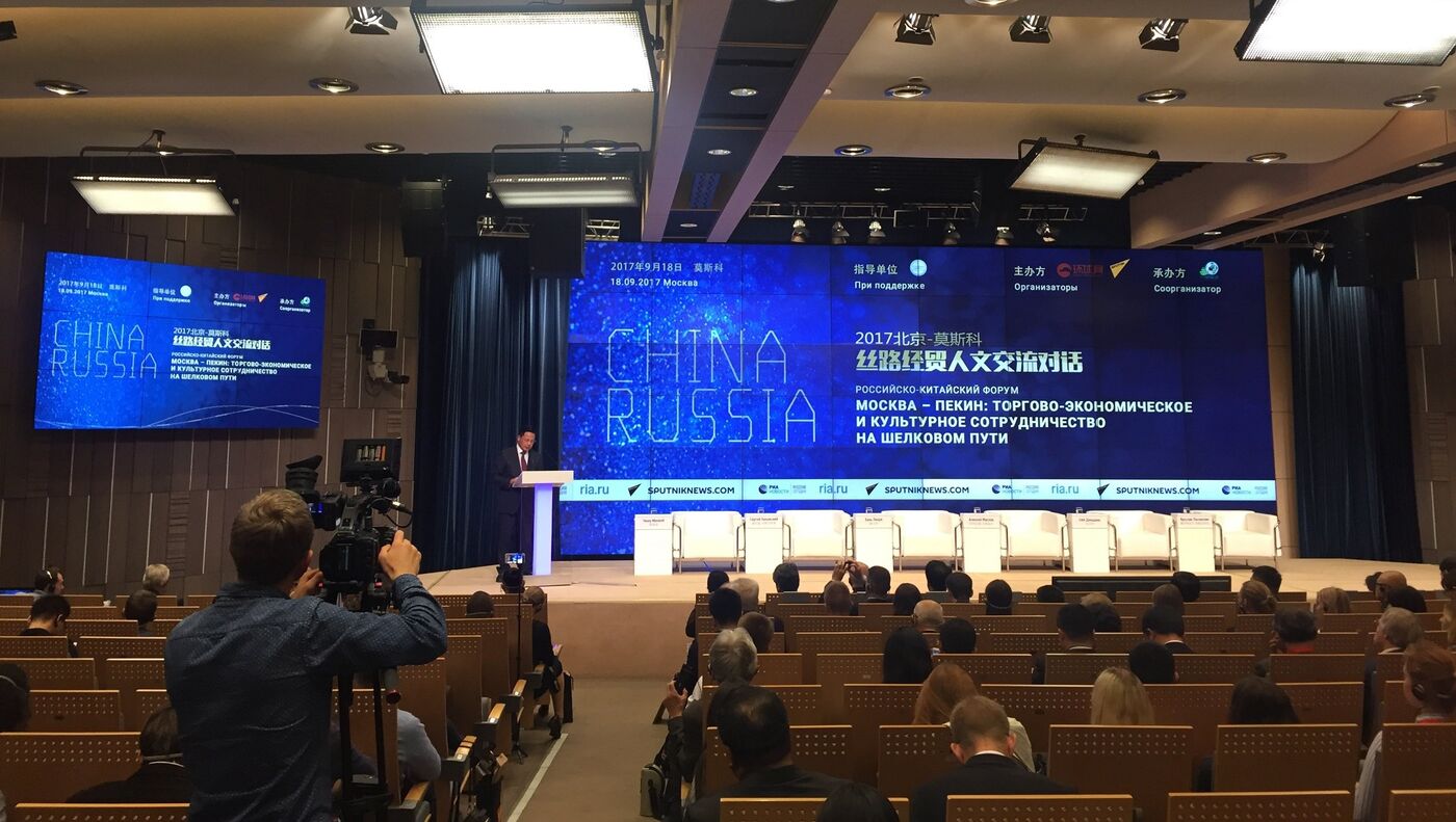 9月18日,俄中论坛“2017北京-莫斯科丝路经贸人文交流对话”在“今日俄罗斯”国际通讯社多媒体中心举行。 2017年9月18日, 俄罗斯卫星通讯社