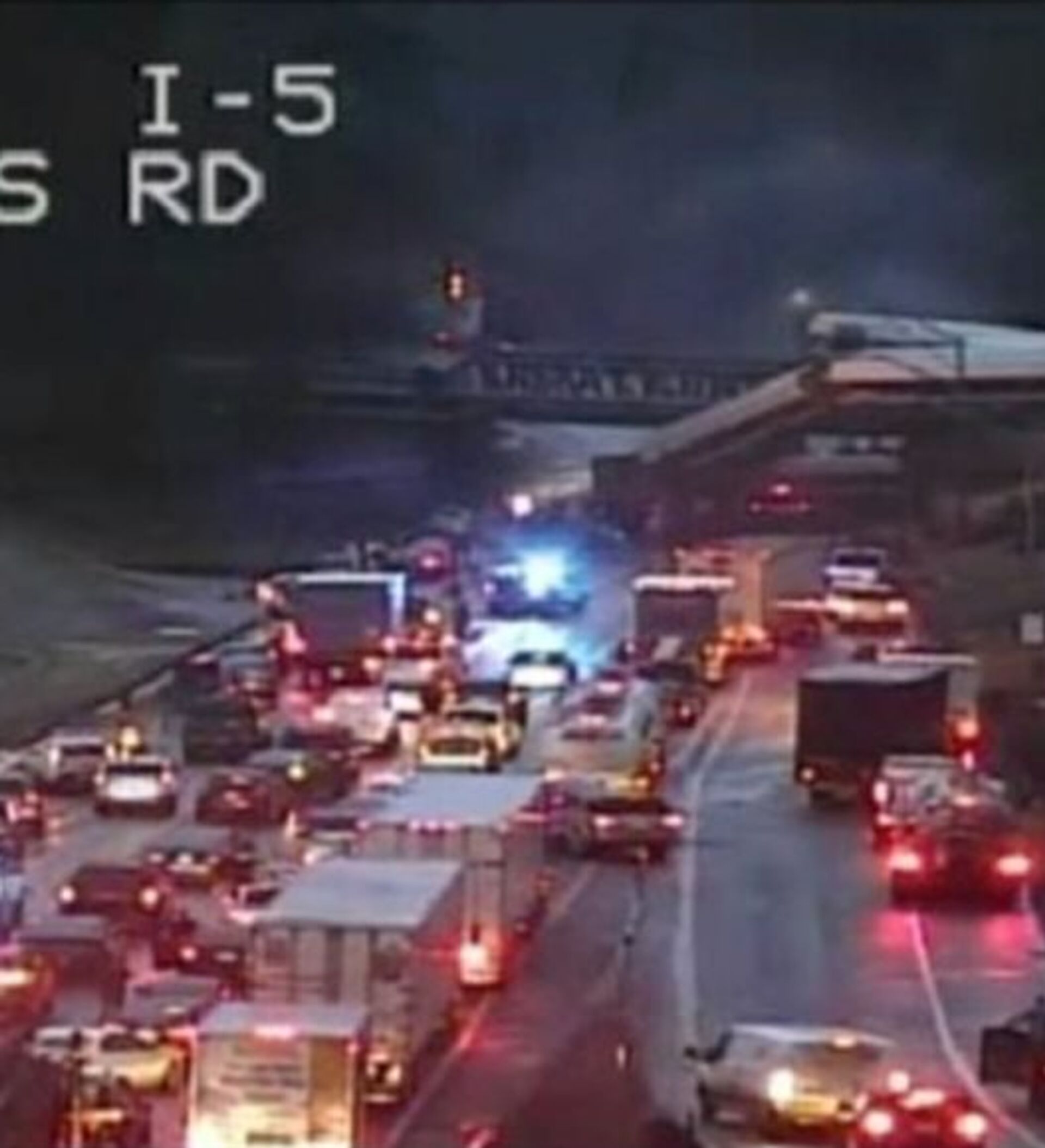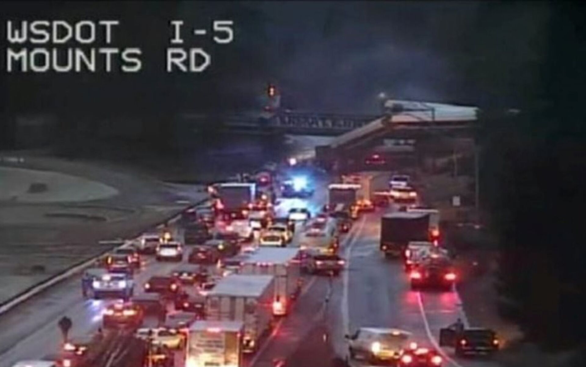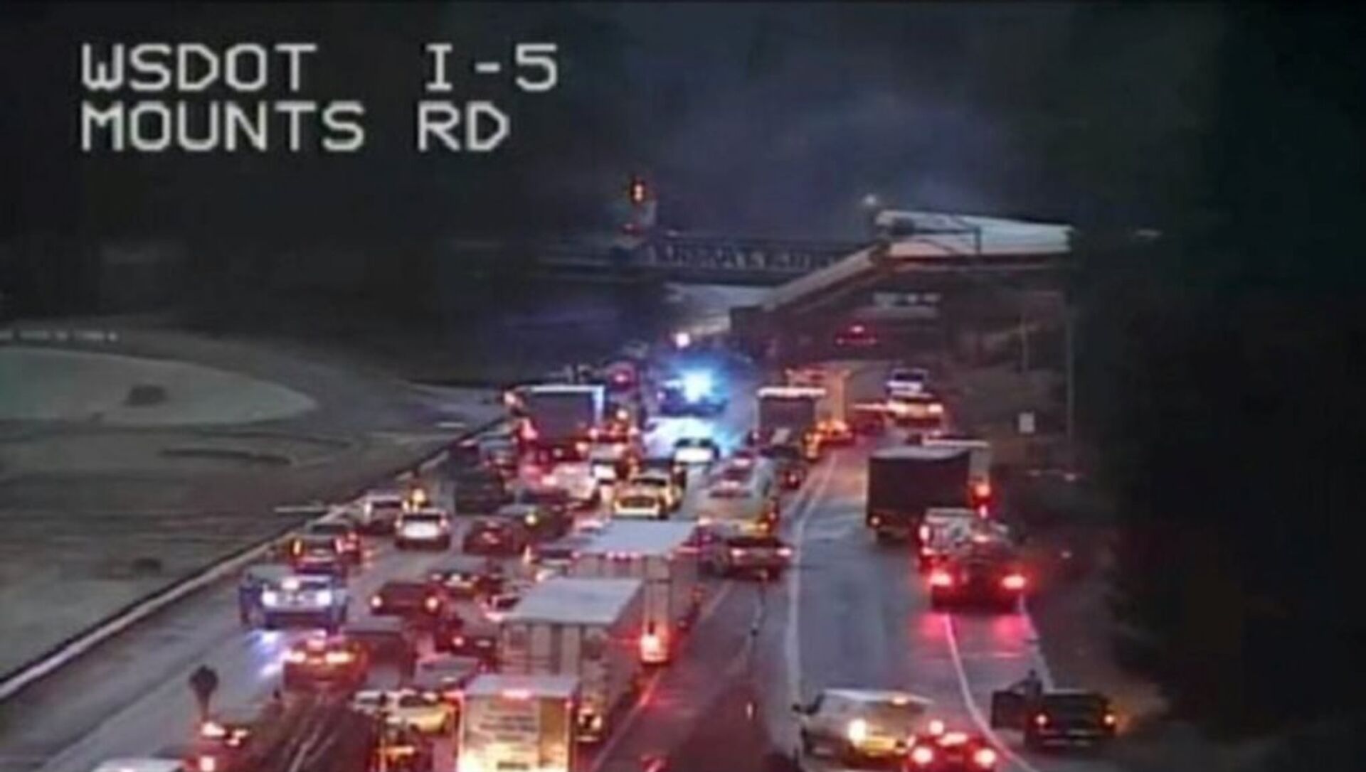 事故发生在当地时间18日上午7时40分,事发地点位于华盛顿州西雅图以南80公里处。脱轨车厢从铁路桥砸落到下面的公路上。