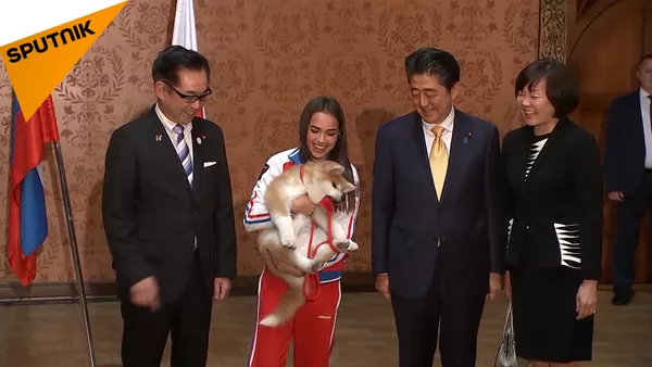 奥运冠军阿林娜·扎吉托娃获赠一只秋田犬