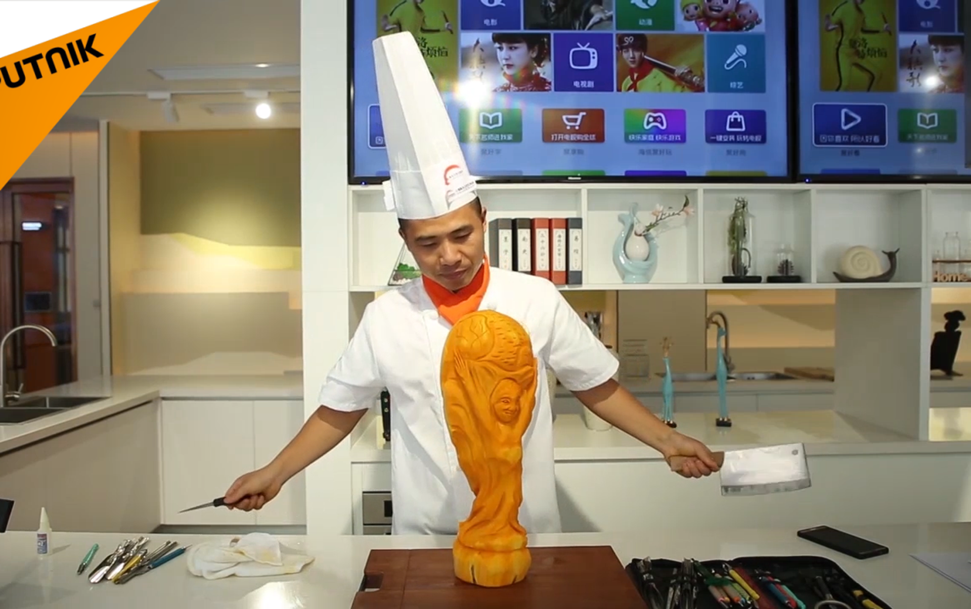 中国厨师用南瓜雕刻“大力神杯”