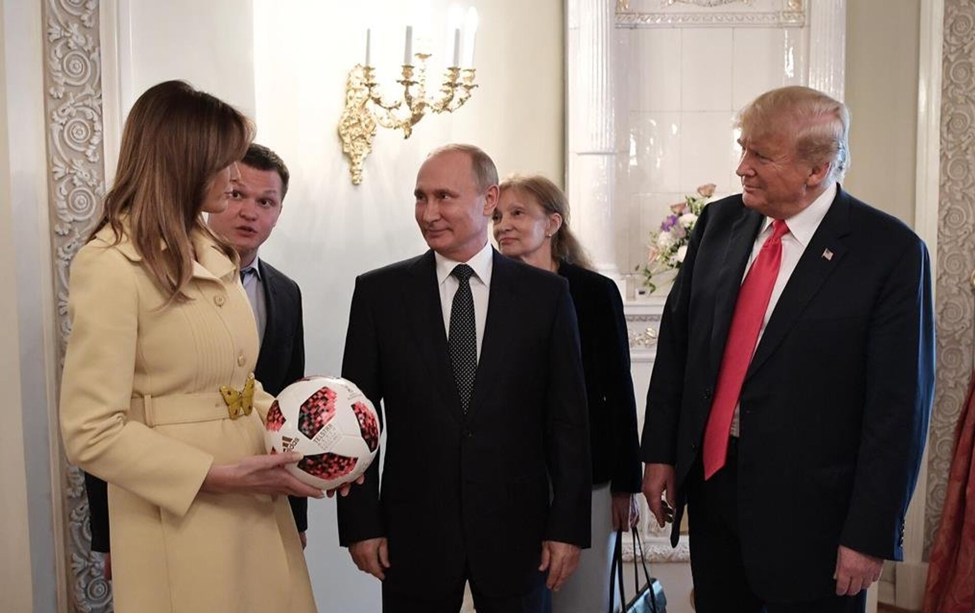美国第一夫人梅拉尼娅在赫尔辛基与俄罗斯总统普京握手后的表情引发网友热议。 2018年7月18日, 俄罗斯卫星通讯社