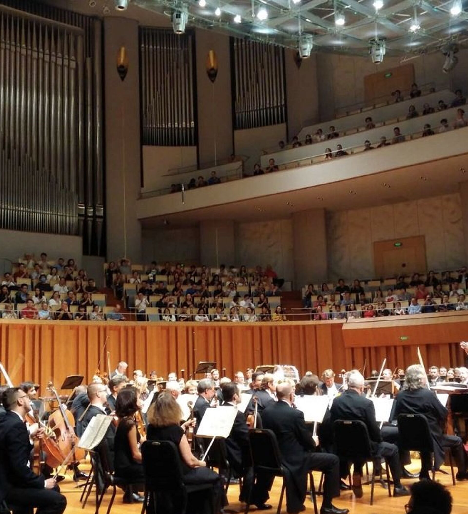 他说:“最近两年竟建起这么多音乐厅!音响效果一流。中国在这方面的突飞猛进甚至让人有些羡慕。很高兴来到这里。”