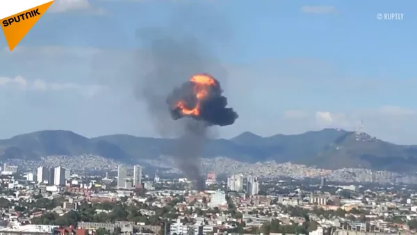 着火的墨西哥酒精厂上空的火球