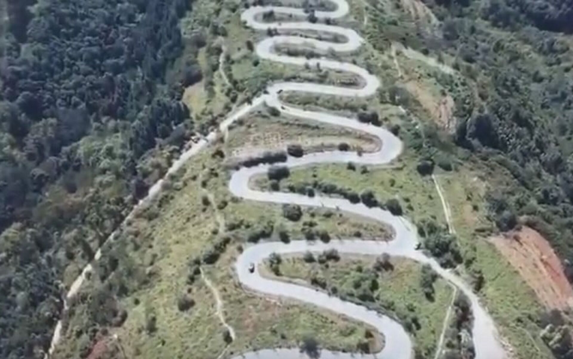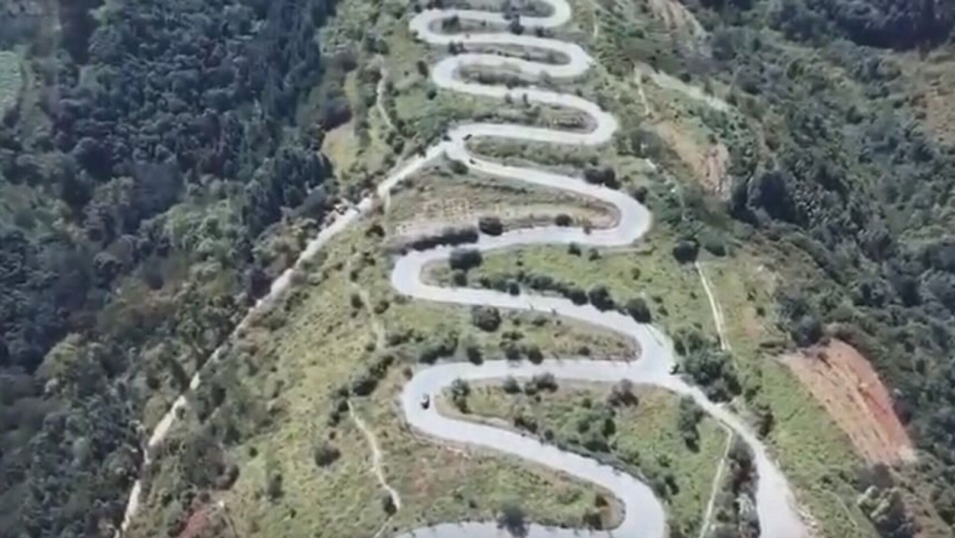 一架无人机拍下中国一条有68道弯的路