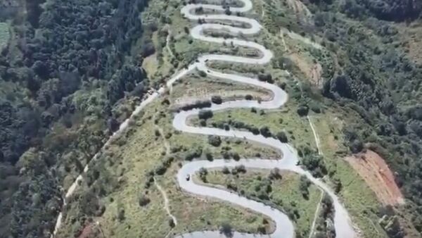 无人机拍下了壮观的镜头,可以看到中国南部省份云南省的蜿蜒山路。 2018年12月21日, 俄罗斯卫星通讯社