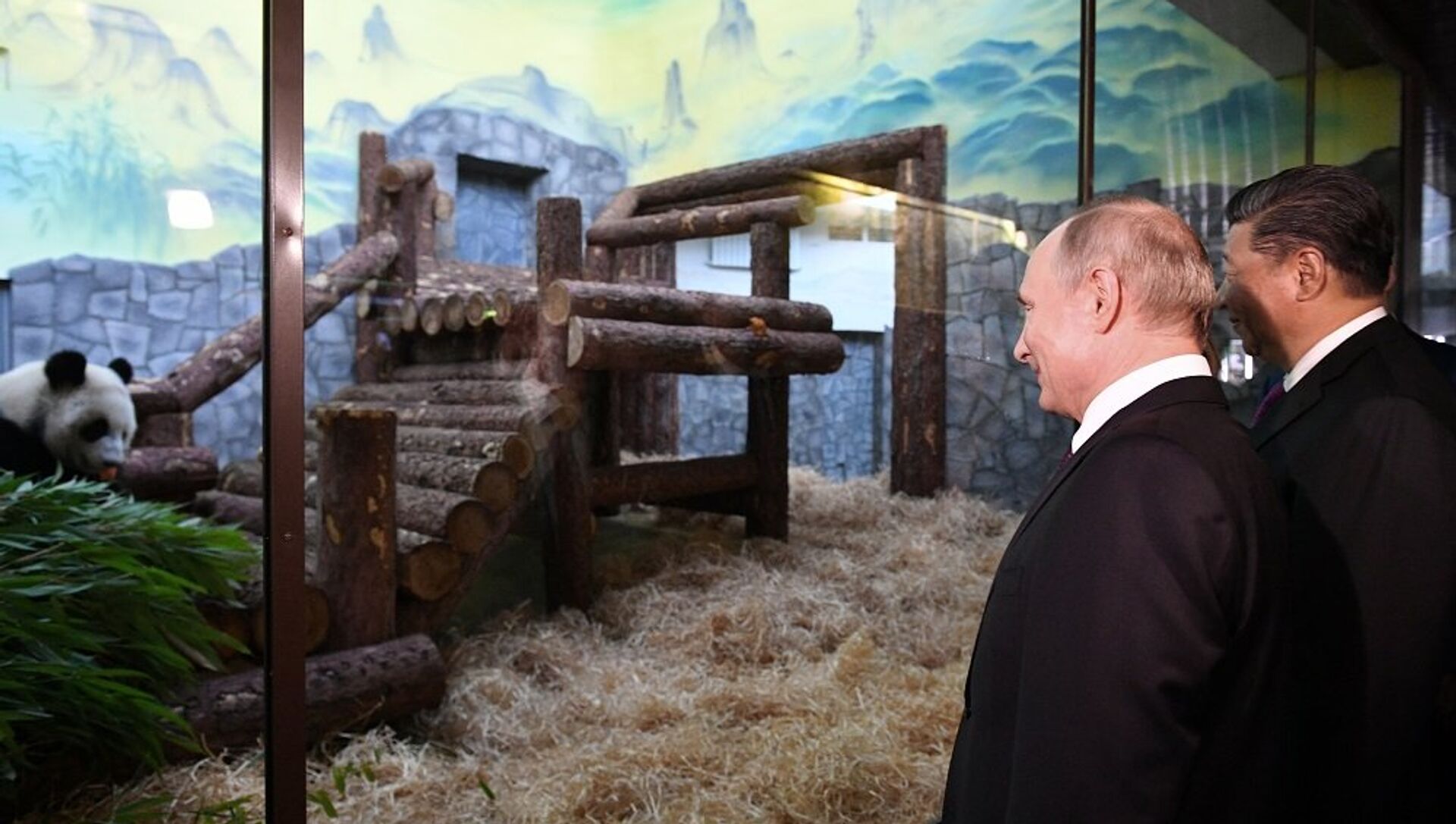 普京和习近平参观莫斯科动物园熊猫馆