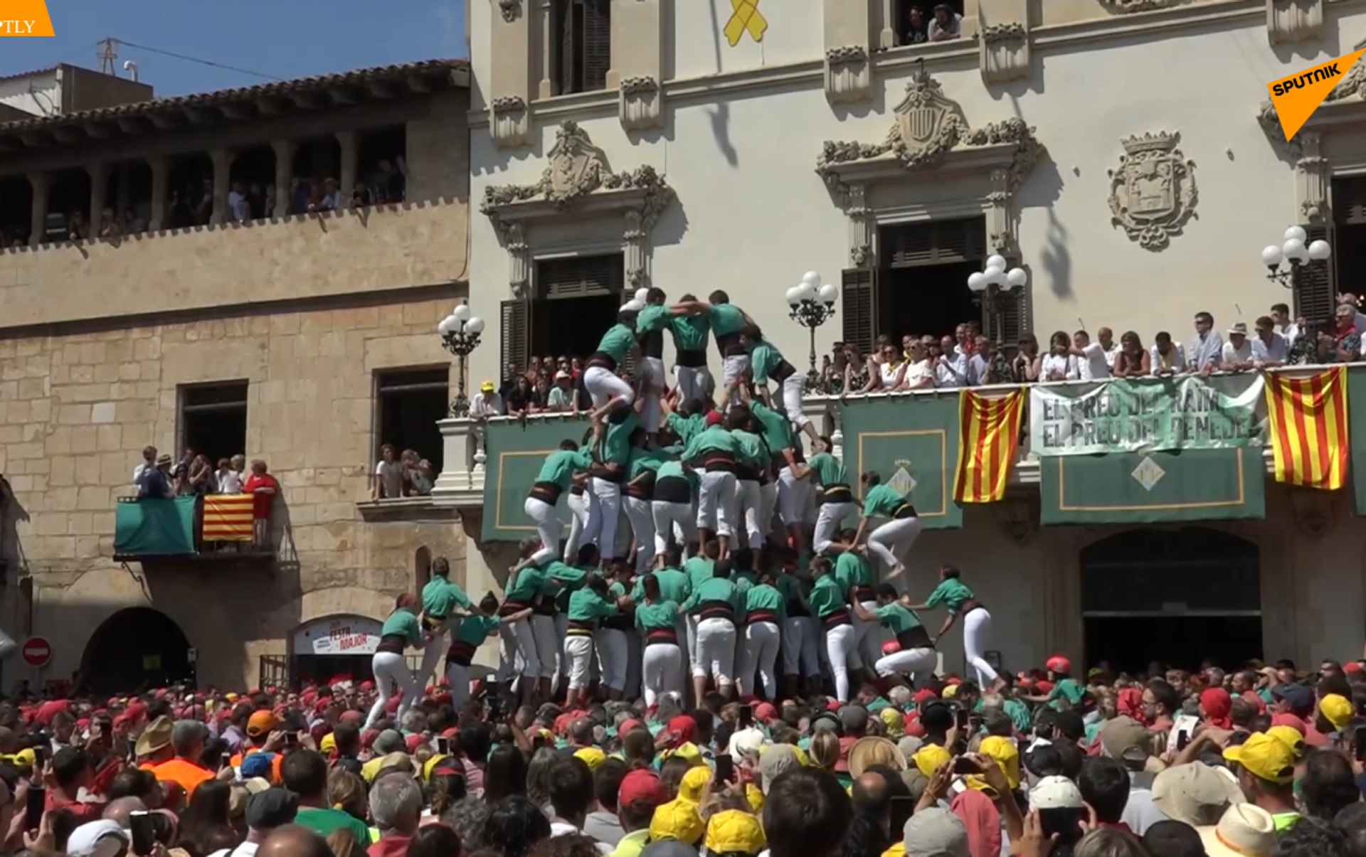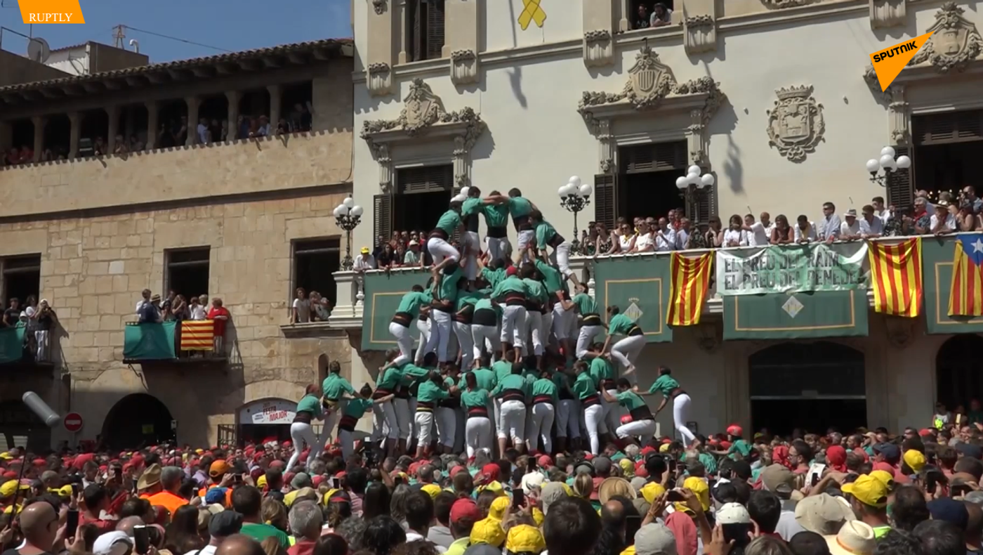 西班牙巴塞罗那,人们参加传统叠人塔表演。 2019年9月1日, 俄罗斯卫星通讯社