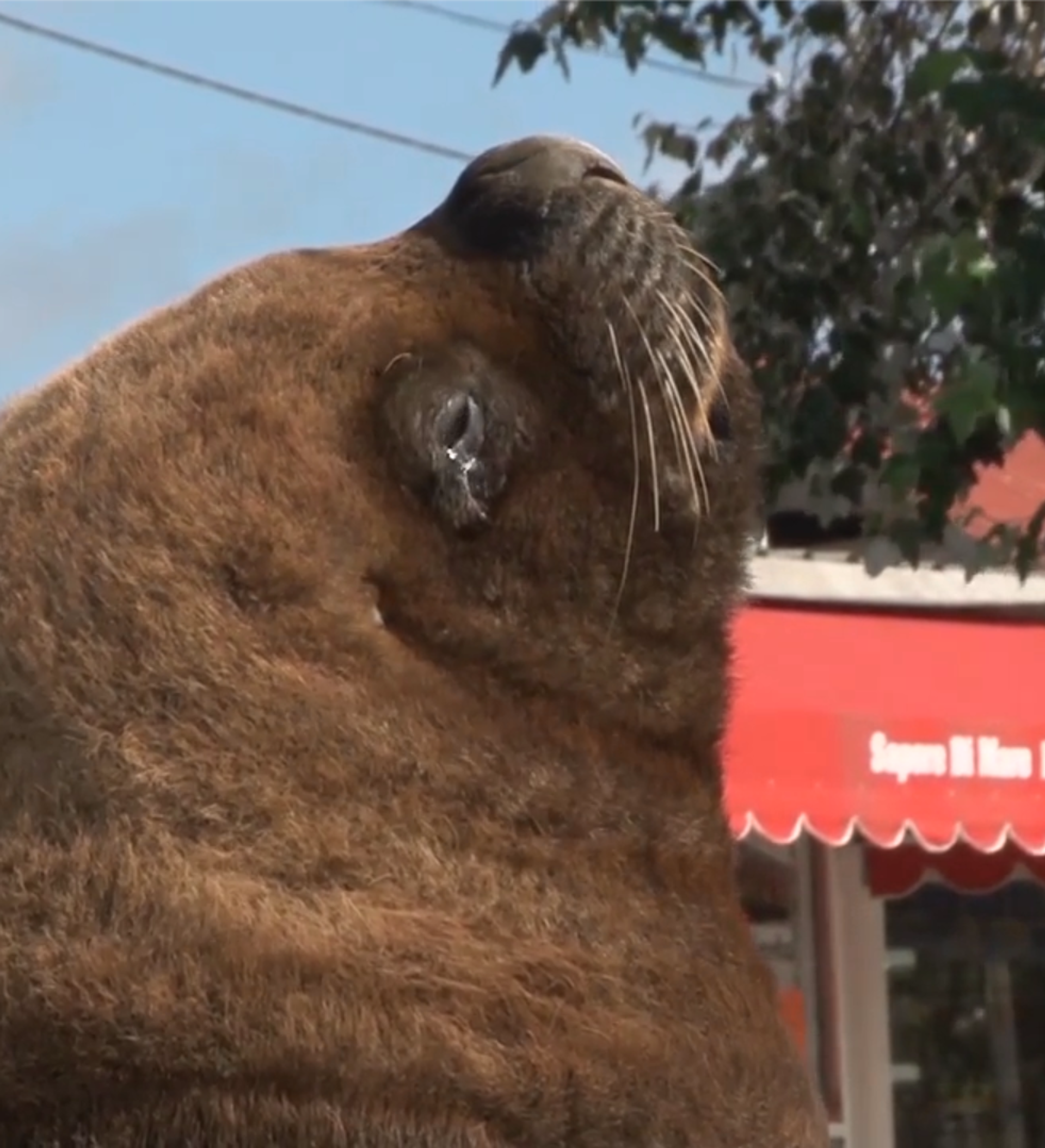 游客消失后,海狮们感到无拘无束,它们自豪地爬上了陆地。 海狮不仅像真正的主人一样沿着城市的街道散步,它们还令当地的狗都夹紧了尾巴。海狮甚至还沿着海岸追赶少见的行人。