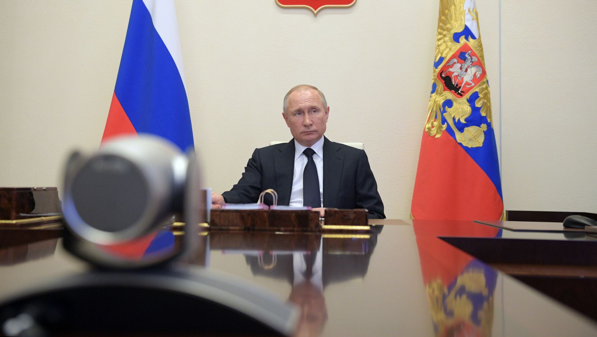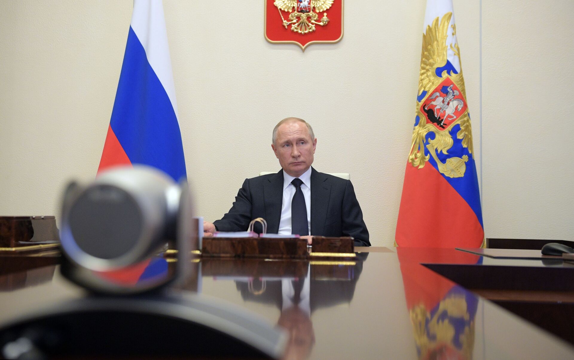 15 апреля 2020. Президент РФ Владимир Путин проводит в режиме видеоконференции совещание с членами правительства РФ. - 俄罗斯卫星通讯社
