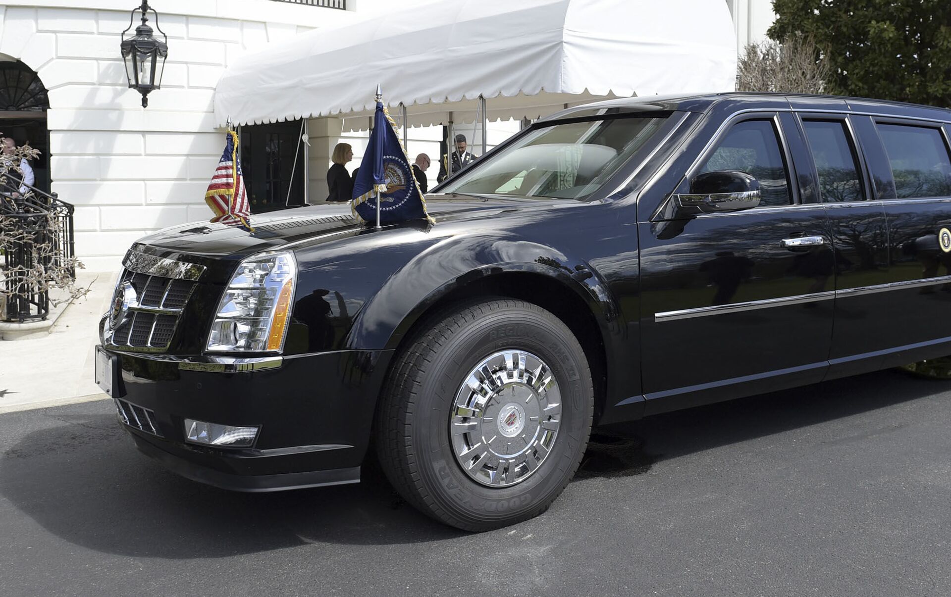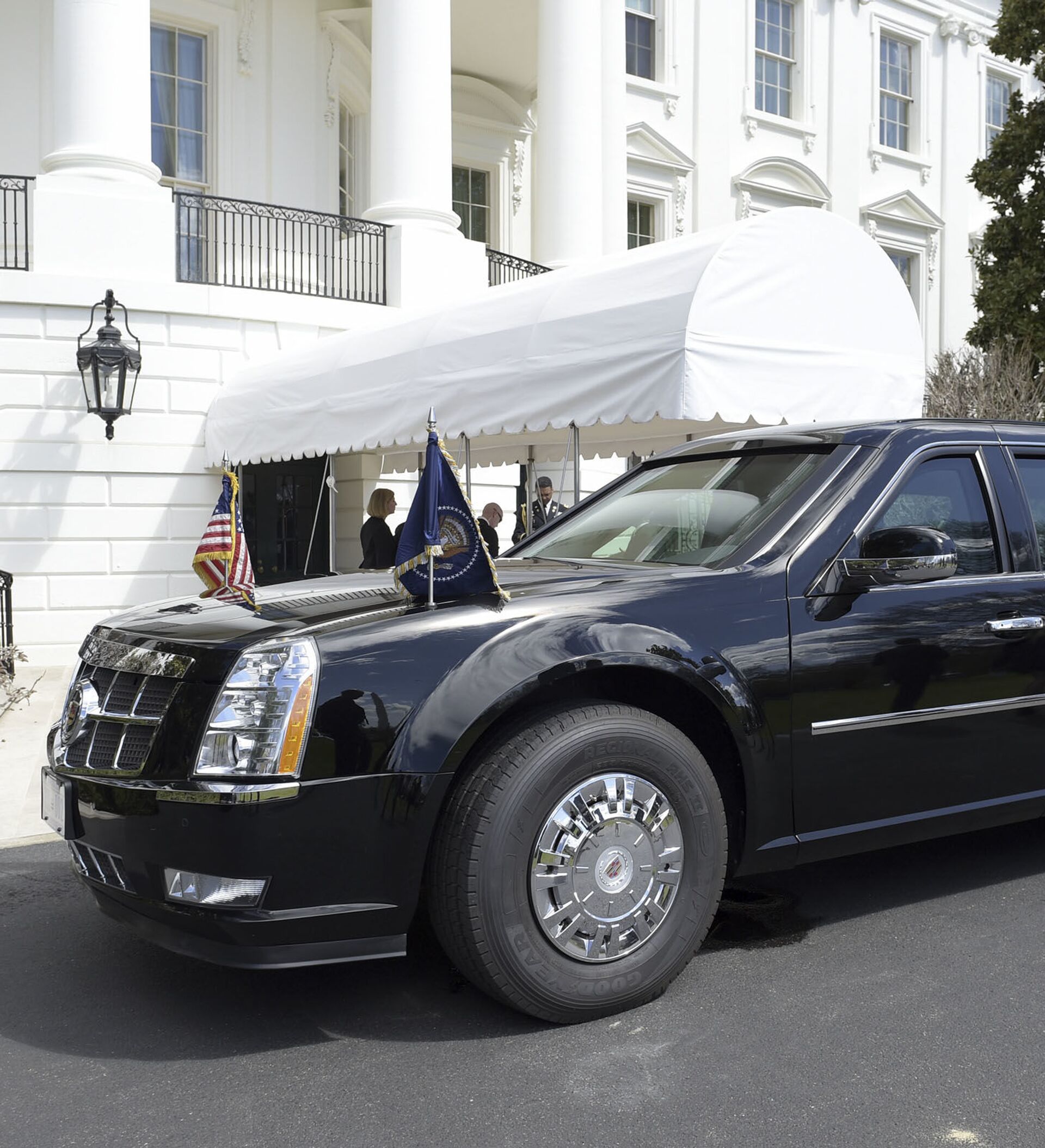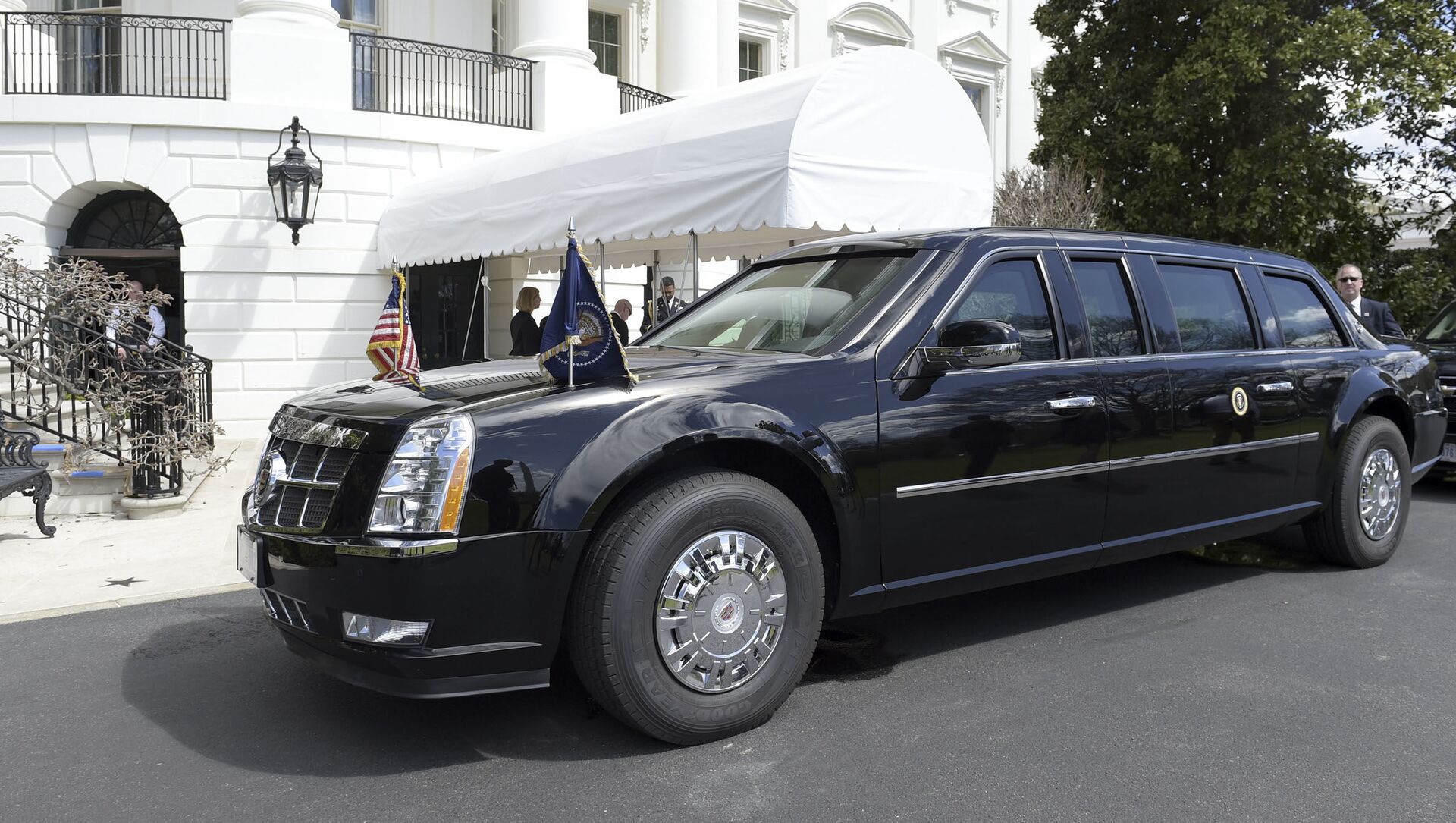 Лимузин Cadillac президента США Дональда Трампа у здания Белого дома в Вашингтоне
