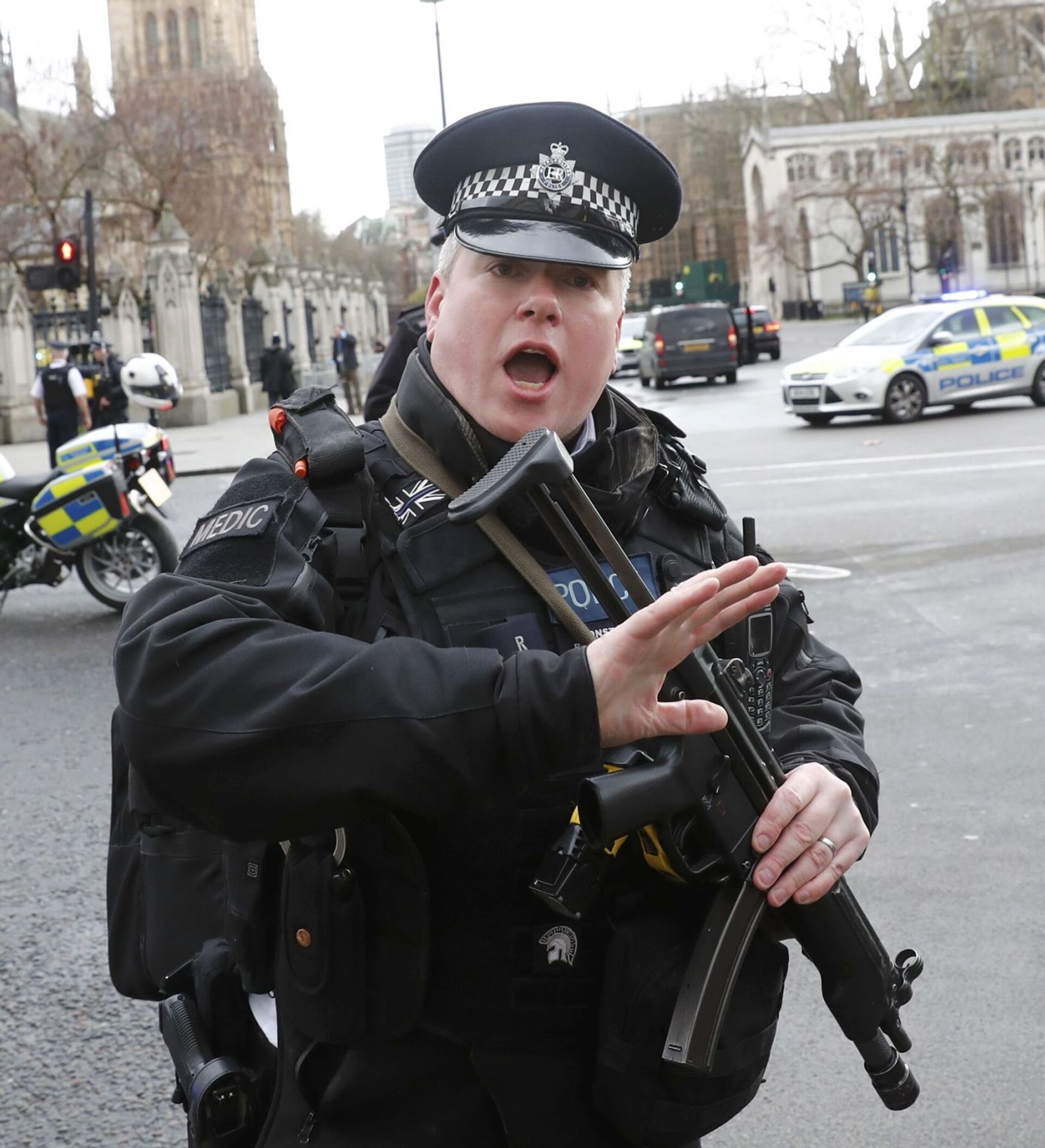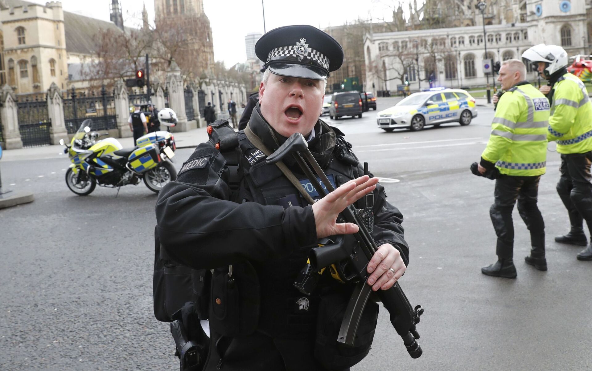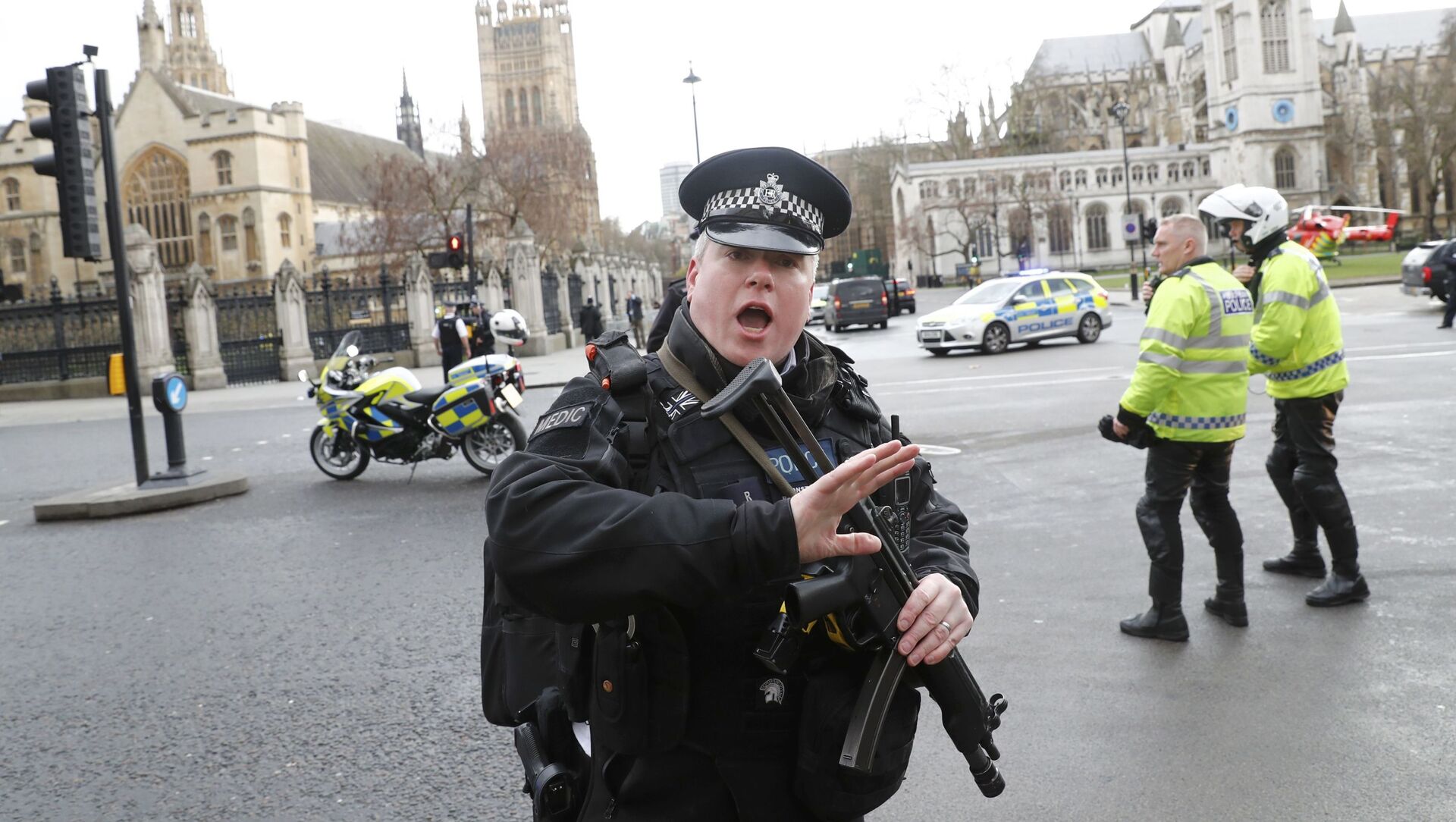 Полицейский у здания парламента в Лондоне, где произошла стрельба