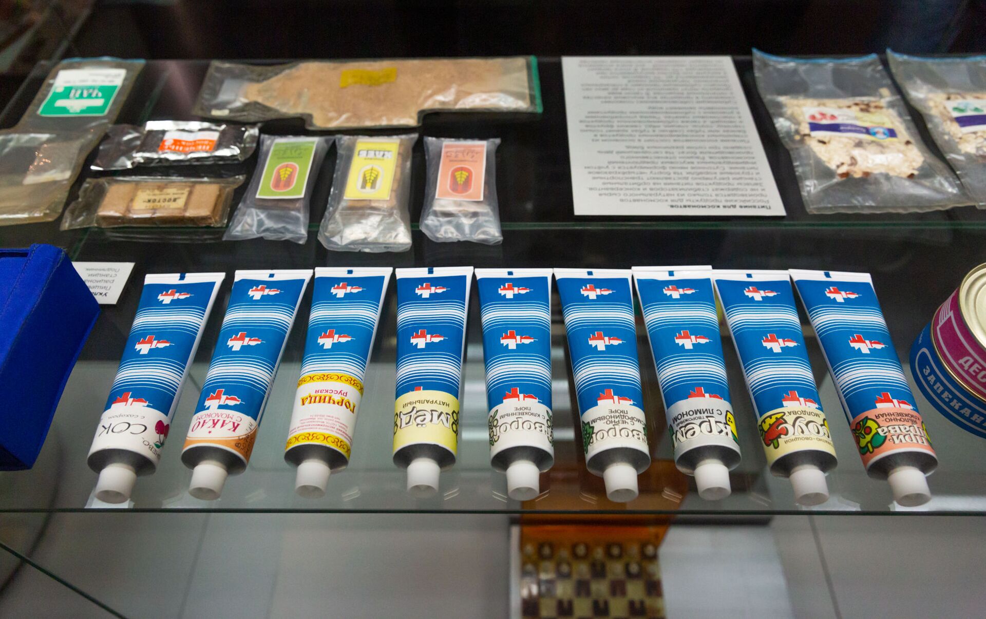 鉴于其他食品是罐头或干燥食品,这些不需要咀嚼,为了训练颌骨肌肉,每位飞行参与者将获得各种水果干,以及饼干和蜂蜜糕。