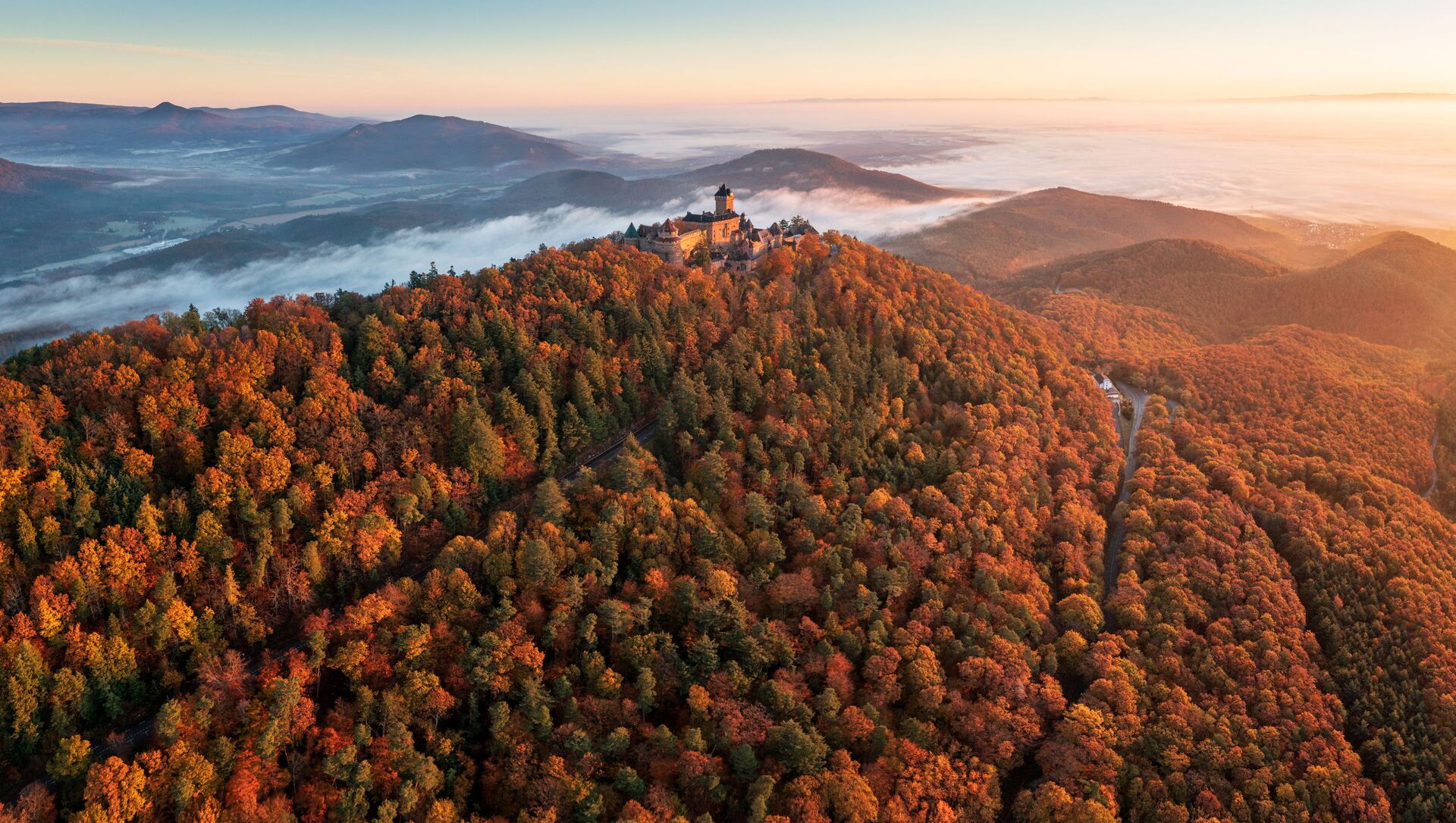 法国,日出时的上科尼斯堡城堡。