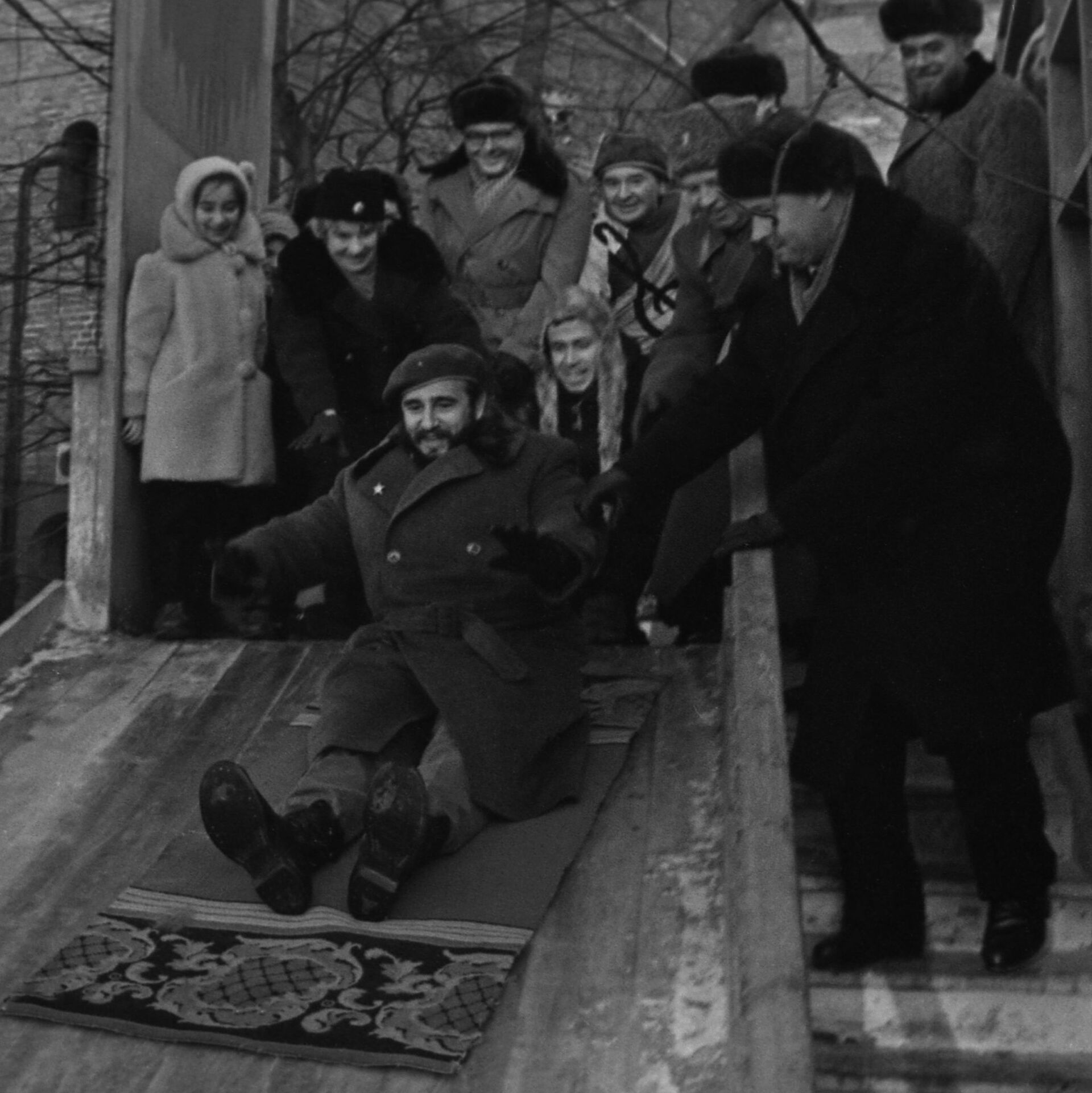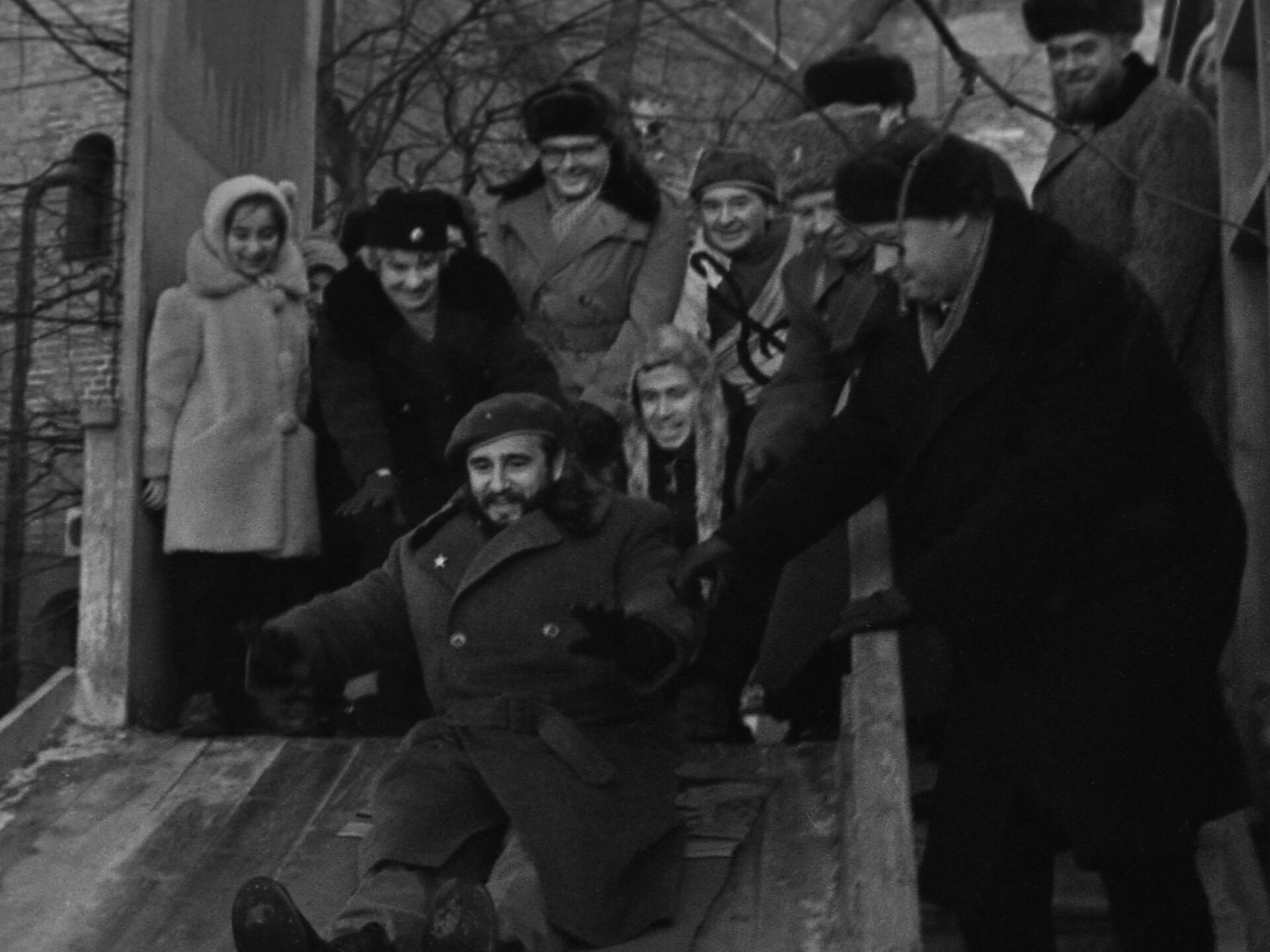 古巴共和国前总理、古巴革命领袖、古巴共产党中央委员会前第一书记菲德尔·卡斯特罗对前苏联进行正式访问。卡斯特罗和莫斯科的小学生们在莫斯科克里姆林宫的泰尼茨基花园里玩冰滑梯。
