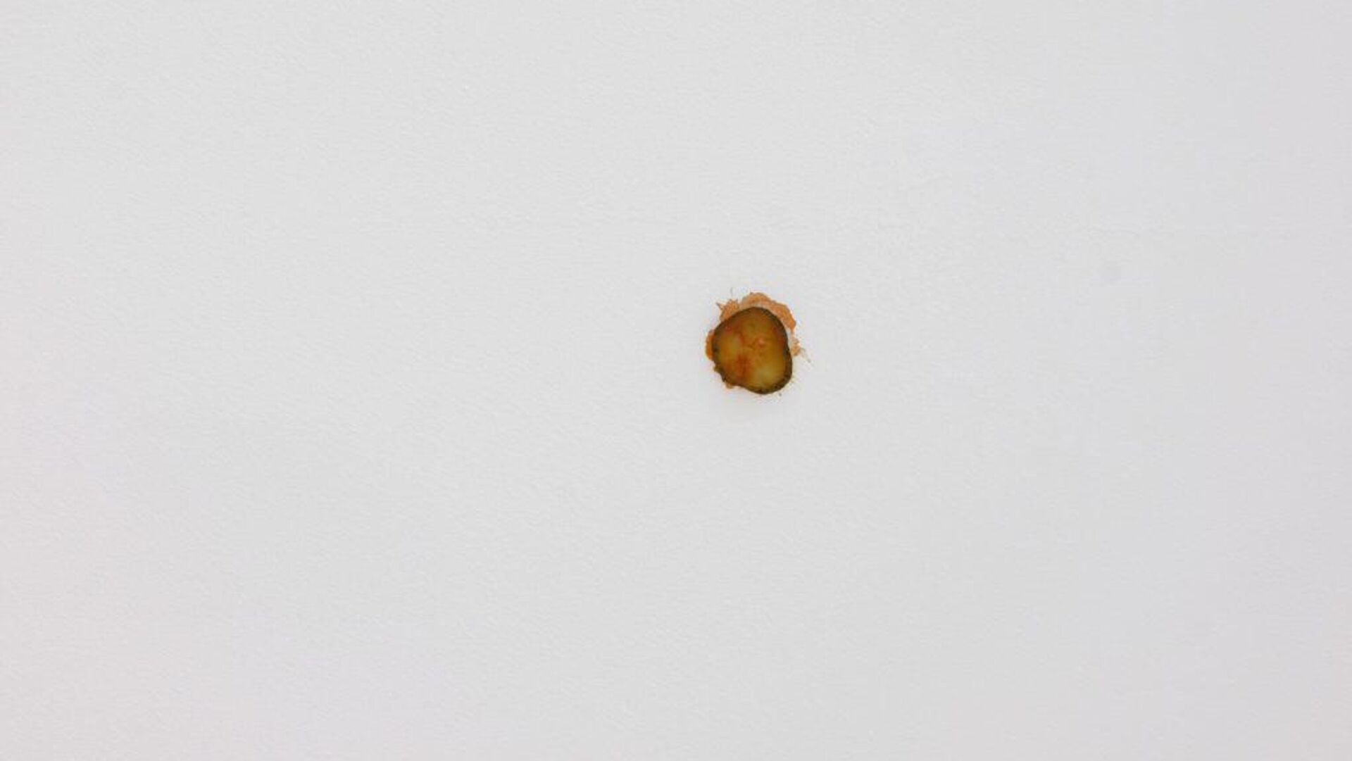 在新西兰,一件“艺术品”被以1万美元出售,它就是一片被从汉堡里甩到天花板上且被番茄酱粘在那里的酸黄瓜。 2022年7月30日, 俄罗斯卫星通讯社