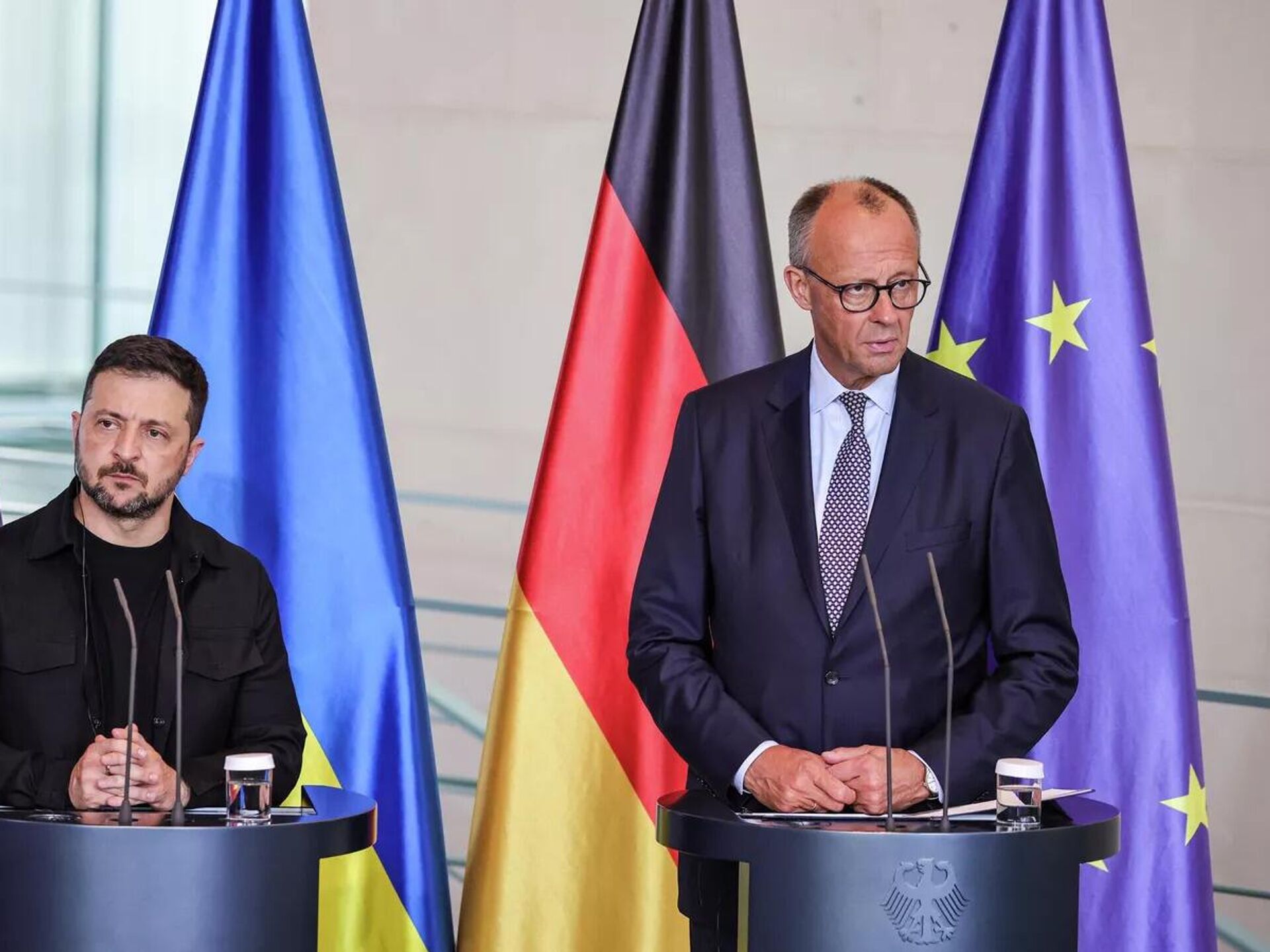 默茨在与泽连斯基举行的联合新闻发布会上表示:“