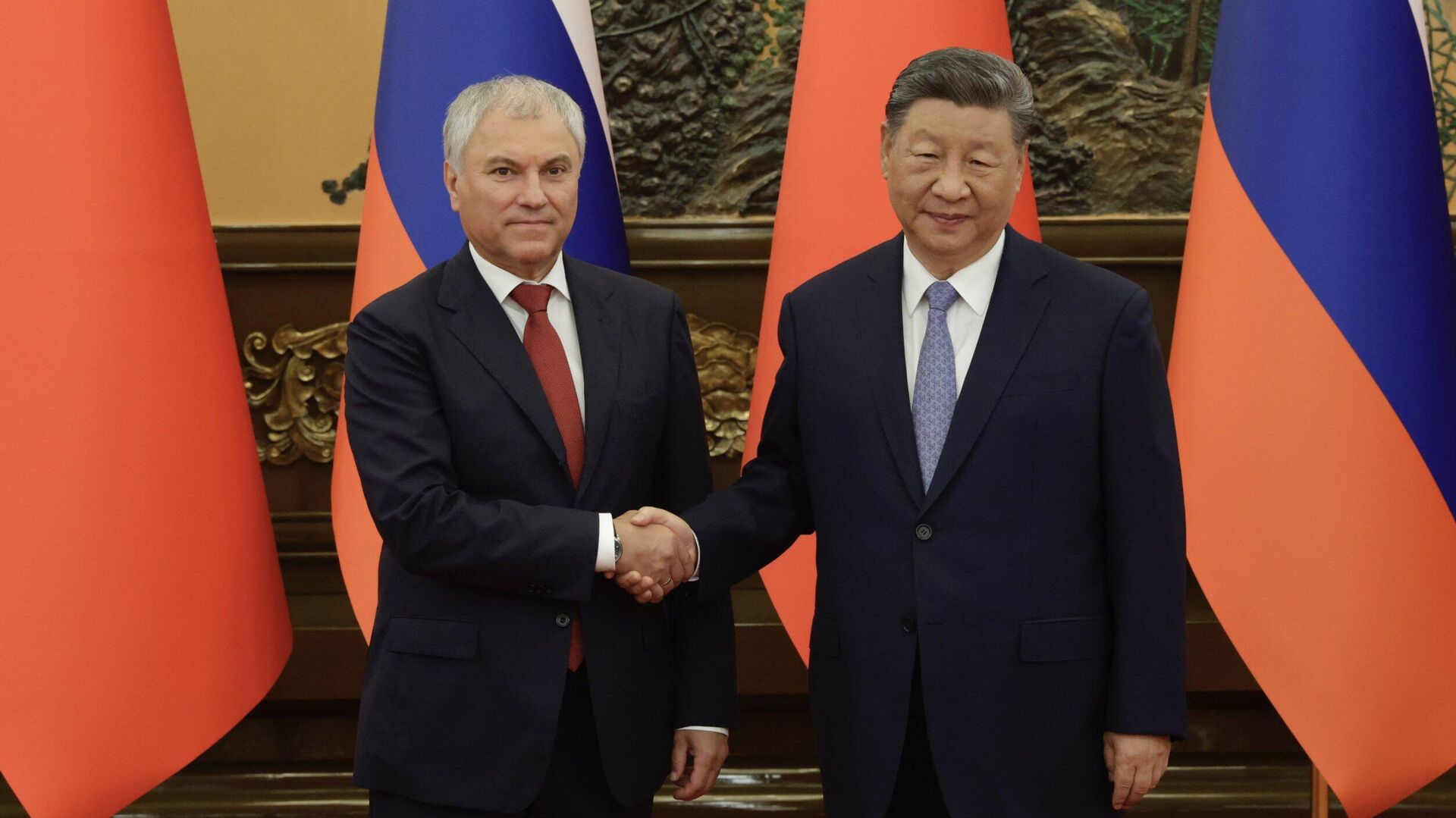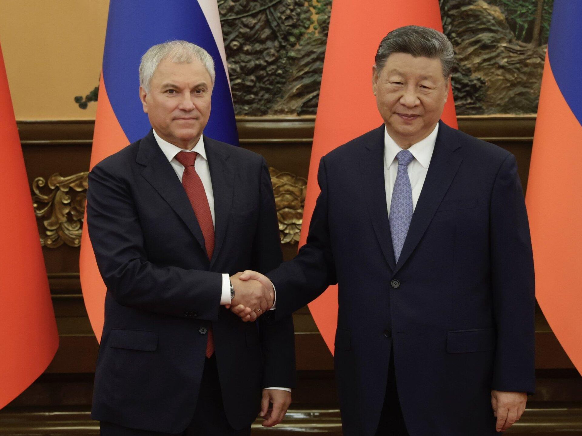 中国国家主席习近平在北京会见俄罗斯国家杜马主席沃洛金