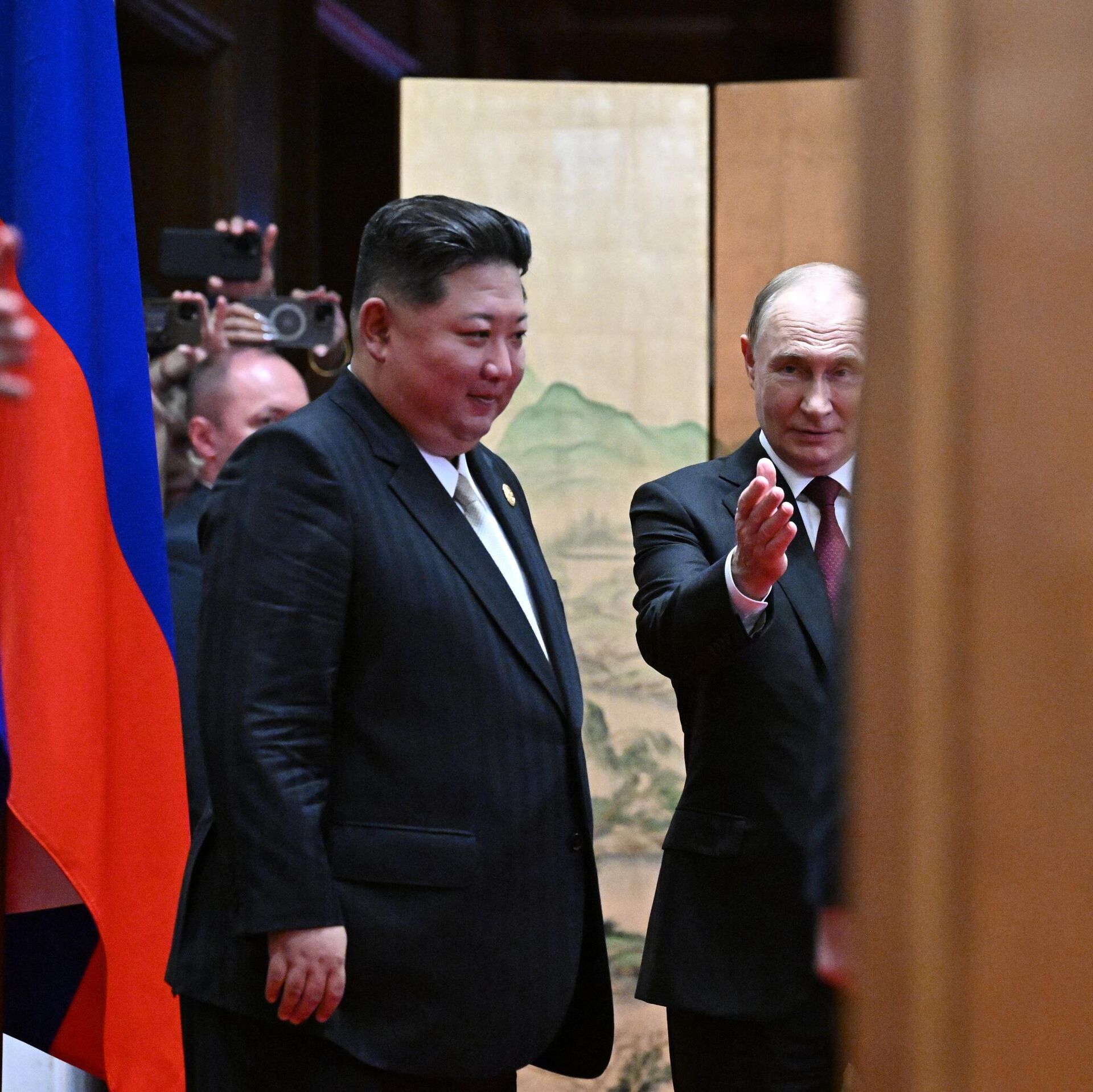 今天早些时候,两国领导人已在纪念中国人民抗日战争暨世界反法西斯战争胜利80周年大会上碰面,在走向天安门城楼途中与中国国家主席习近平进行了简短交谈。此外,二人还与应邀参加纪念活动的其他国家领导人一起出席了招待会。