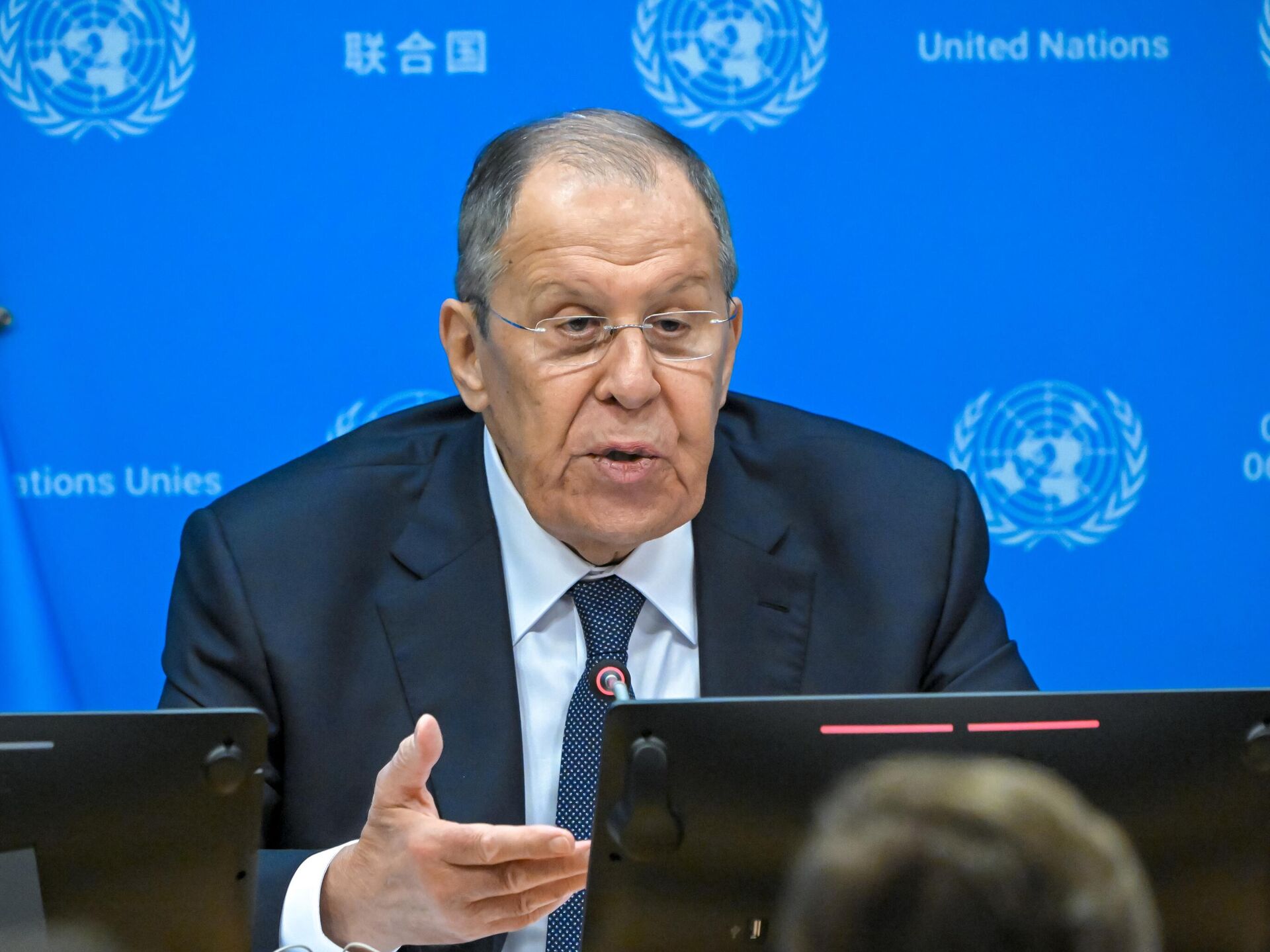 拉夫罗夫在第80届联合国大会高级别会议周结束后的新闻发布会上指出:“我们当然对美国目前在国际水域,但围绕委内瑞拉领海组织的行为感到非常不安……拉丁美洲和加勒比地区的许多其他代表也对此深感不安,包括巴西和岛屿国家。”他补充指出,包括核潜艇在内的大量美国海军已经在该地区集结,并以打击毒品集团为借口发出直接军事干预的威胁。俄外长强调:“就在这些天,我们的美国同事在安理会上与巴拿马一道推动一项决议,将驻海地的国际安全援助部队转变为打击匪徒的国际部队。他们要求非常特殊的任务授权。他们希望安理会批准组建这样一支部队,并将组建事宜交由相关利益方自行决定。”俄外长同时表示,该决议授权对“匪徒”可无限使用武力,也未规定行动期限,也没有规定向联合国安理会汇报的机制。拉夫罗夫指出:“如果将这两个过程——安理会进程和目前围绕委内瑞拉展开的行动进行比较,我不排除某些有创意的人会想到先获得安理会授权,然后宣称委内瑞拉藏匿着来自海地的匪徒。”他表示,俄罗斯与委内瑞拉人民和政府站在一起。拉夫罗夫最后指出:“他们完全有权决定自己的政治和经济路线。”