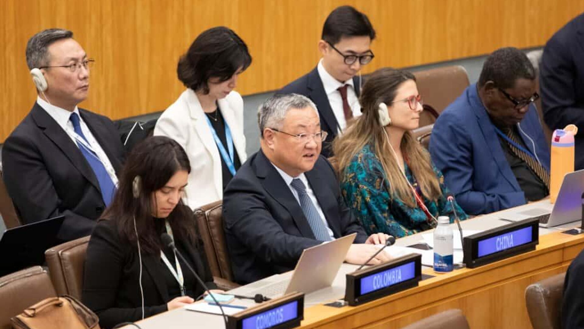 当地时间10月3日,在第80届联合国大会第三委员会会议上,中国常驻联合国代表傅聪代表俄罗斯、白俄罗斯、柬埔寨等28个观点相近国家就单边强制措施作共同发言。