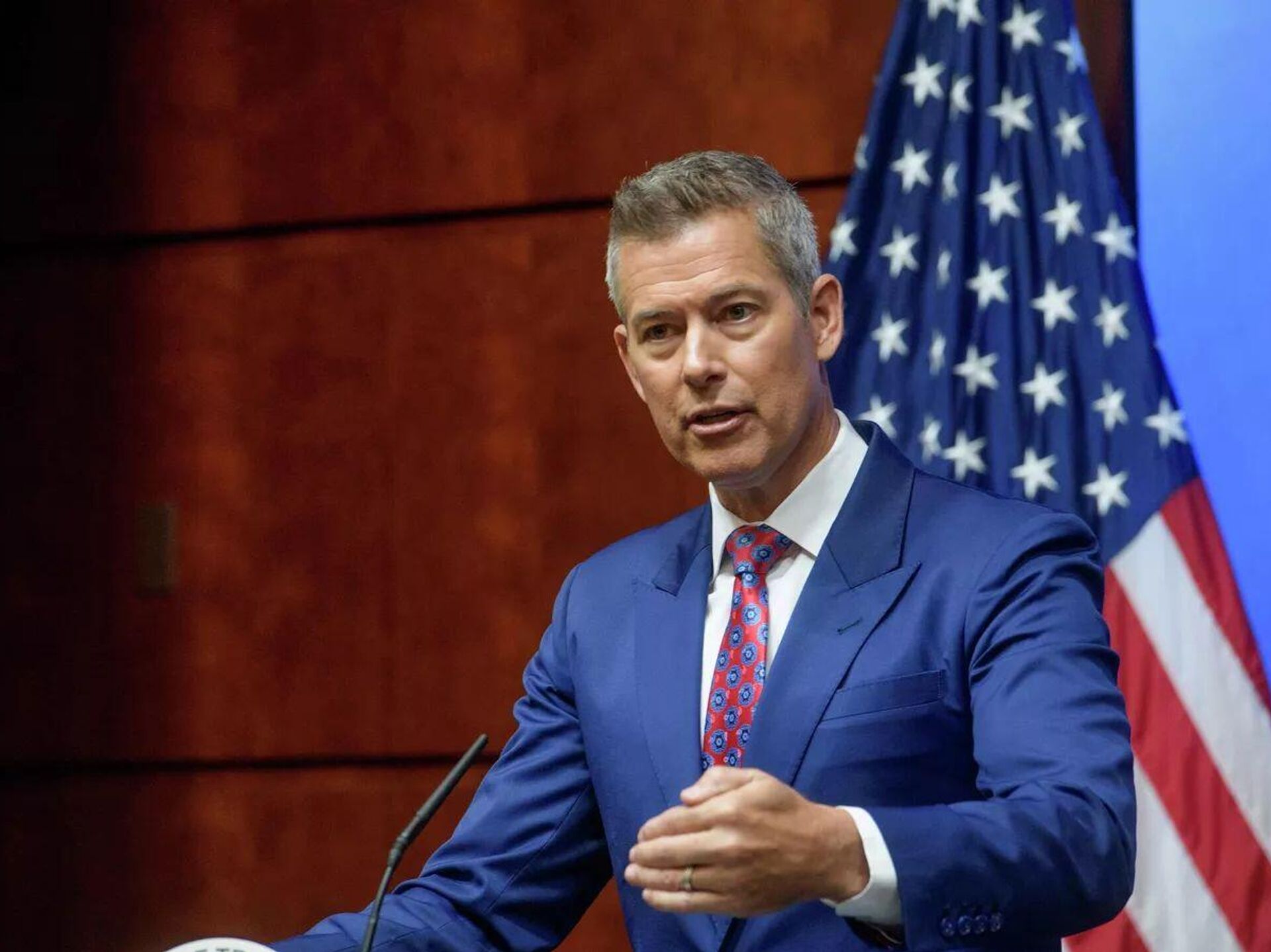 俄罗斯卫星通讯社华盛顿电 美国交通部长肖恩•达菲表示,美国政府持续停摆威胁着空中交通管制员的薪酬,并可能导致全国航空运输中断。 2025年10月24日, 俄罗斯卫星通讯社