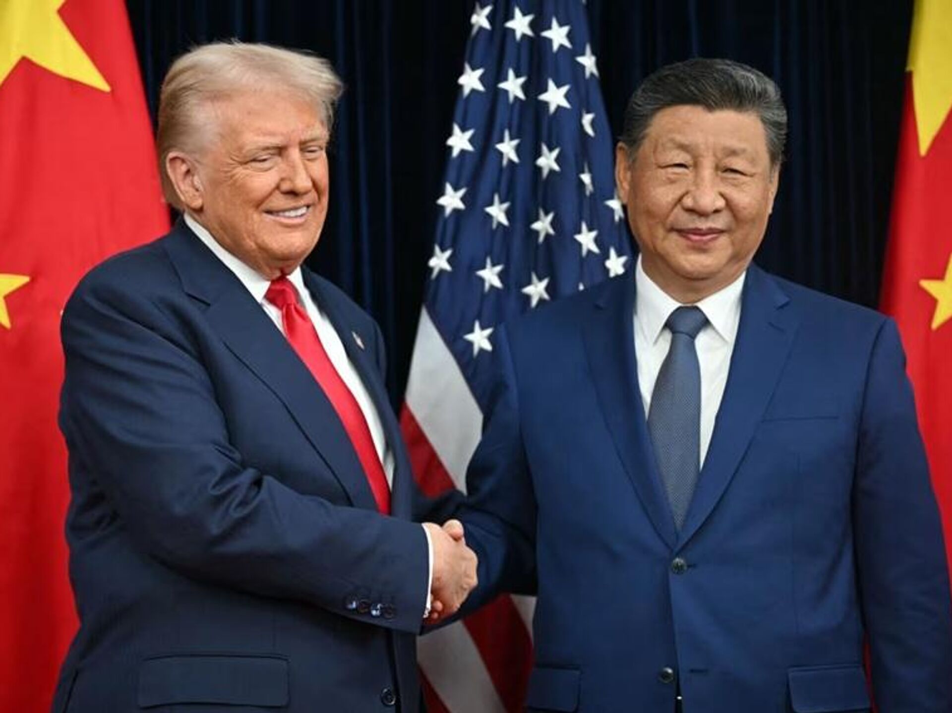 美国总统唐纳德·特朗普表示,如果满分10分,他会给与中国国家主席习近平的会晤打12分。 2025年10月30日, 俄罗斯卫星通讯社
