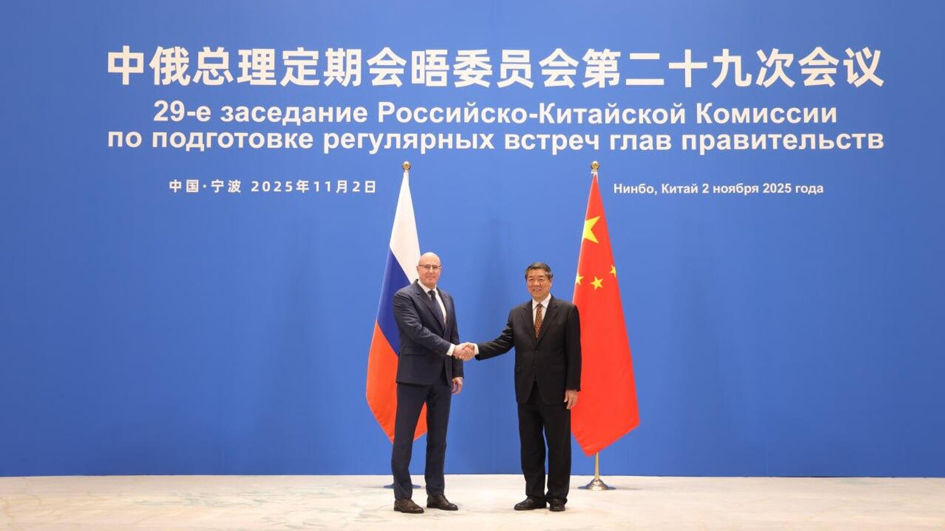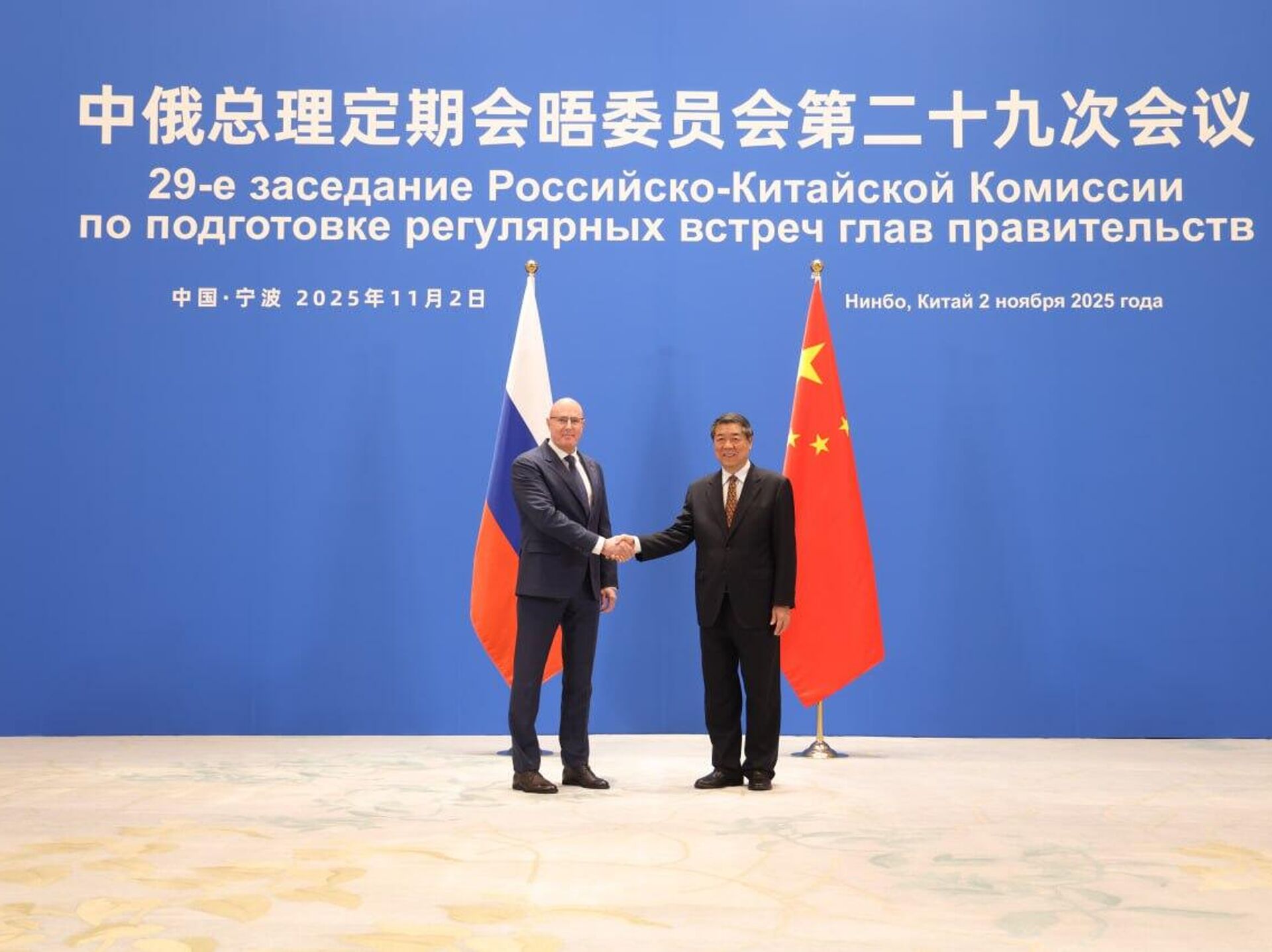 俄罗斯卫星通讯社北京11月3日电 据新华社消息,中国国务院副总理、中俄总理定期会晤委员会中方主席何立峰11月2日同俄罗斯副总理、委员会俄方主席切尔内申科在浙江省宁波市共同主持召开中俄总理定期会晤委员会第二十九次会议。