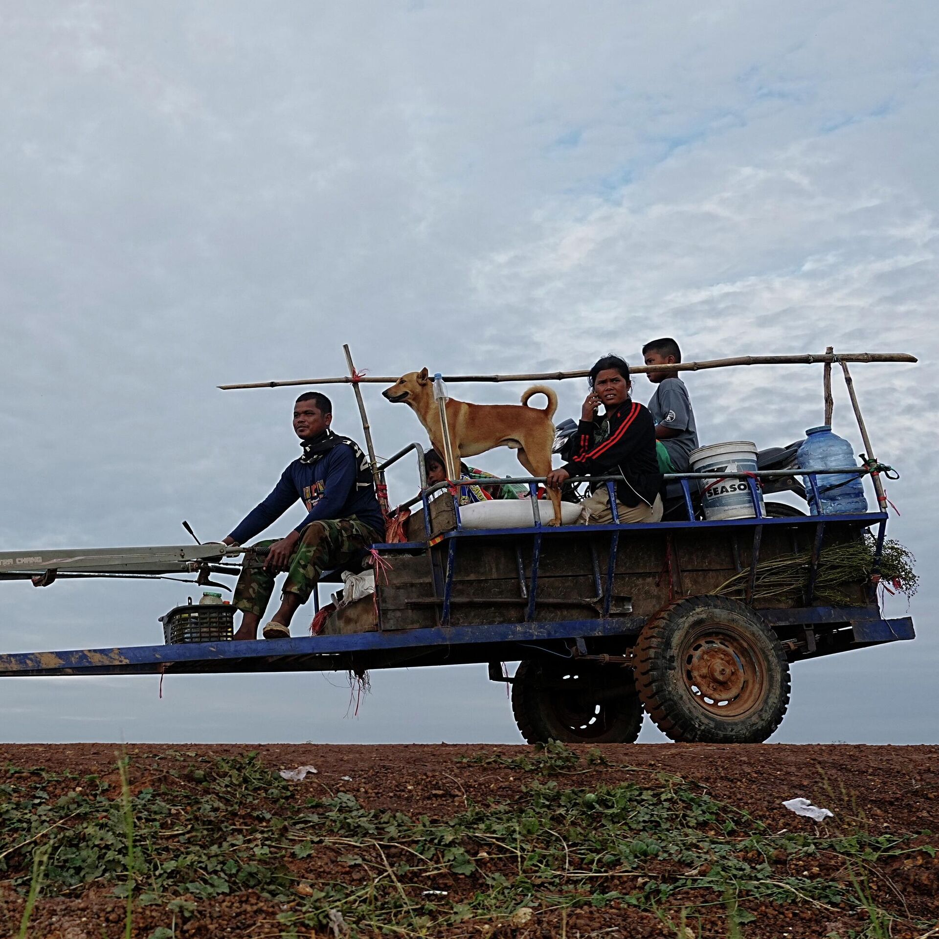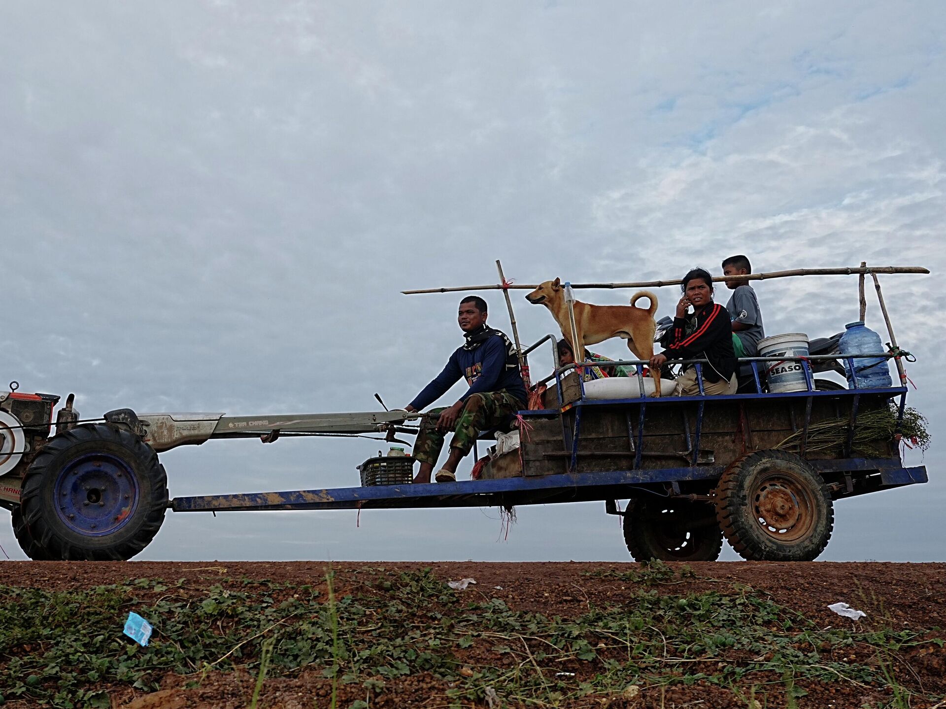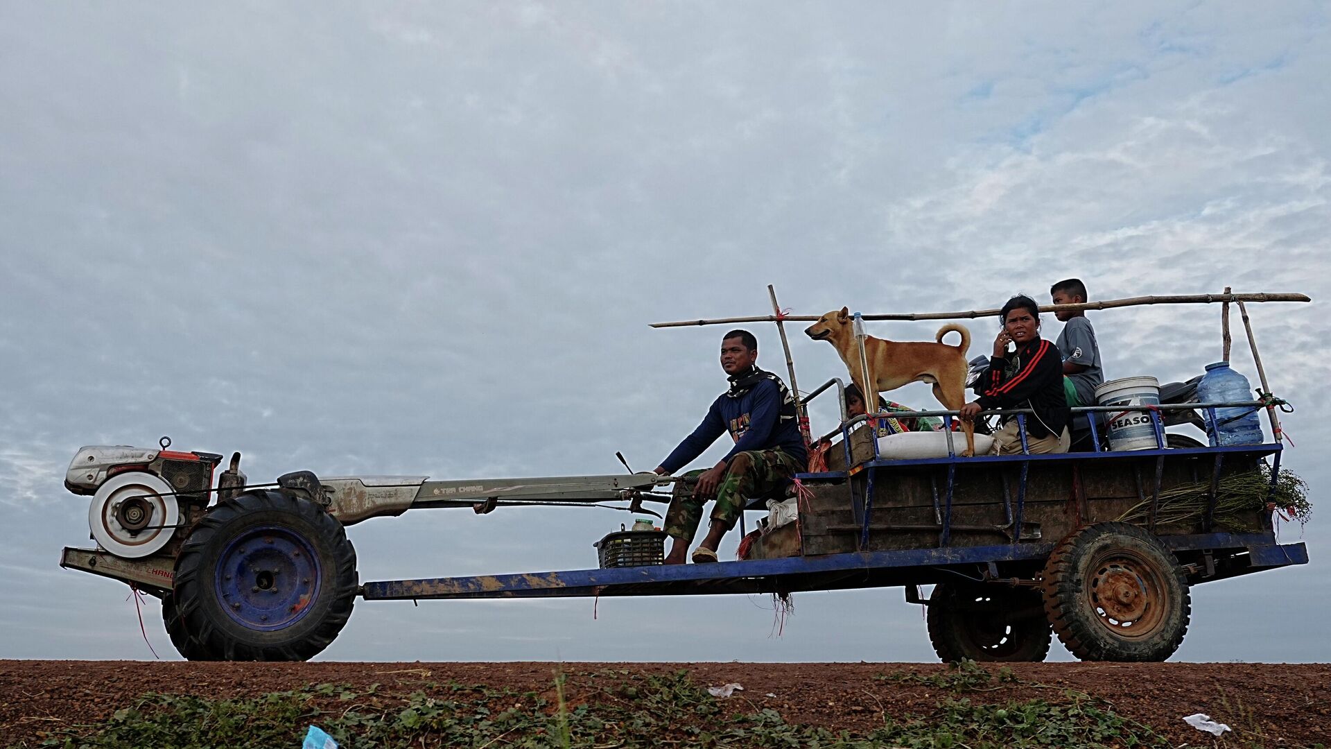2025年12月11日,在泰柬边境再度爆发冲突后,一家庭逃离家园,前往柬埔寨奥多棉吉省钟卡尔稻田避难。