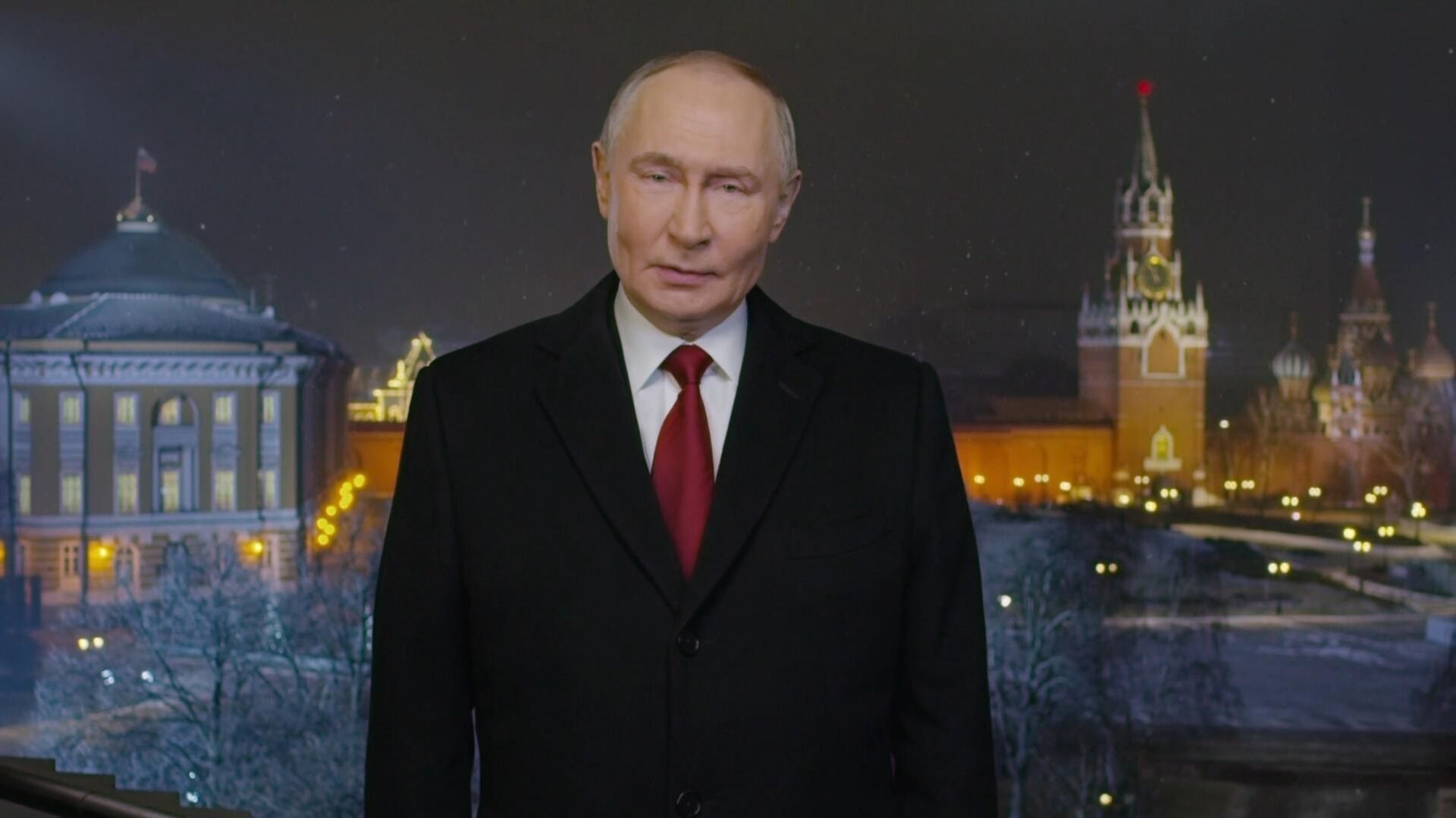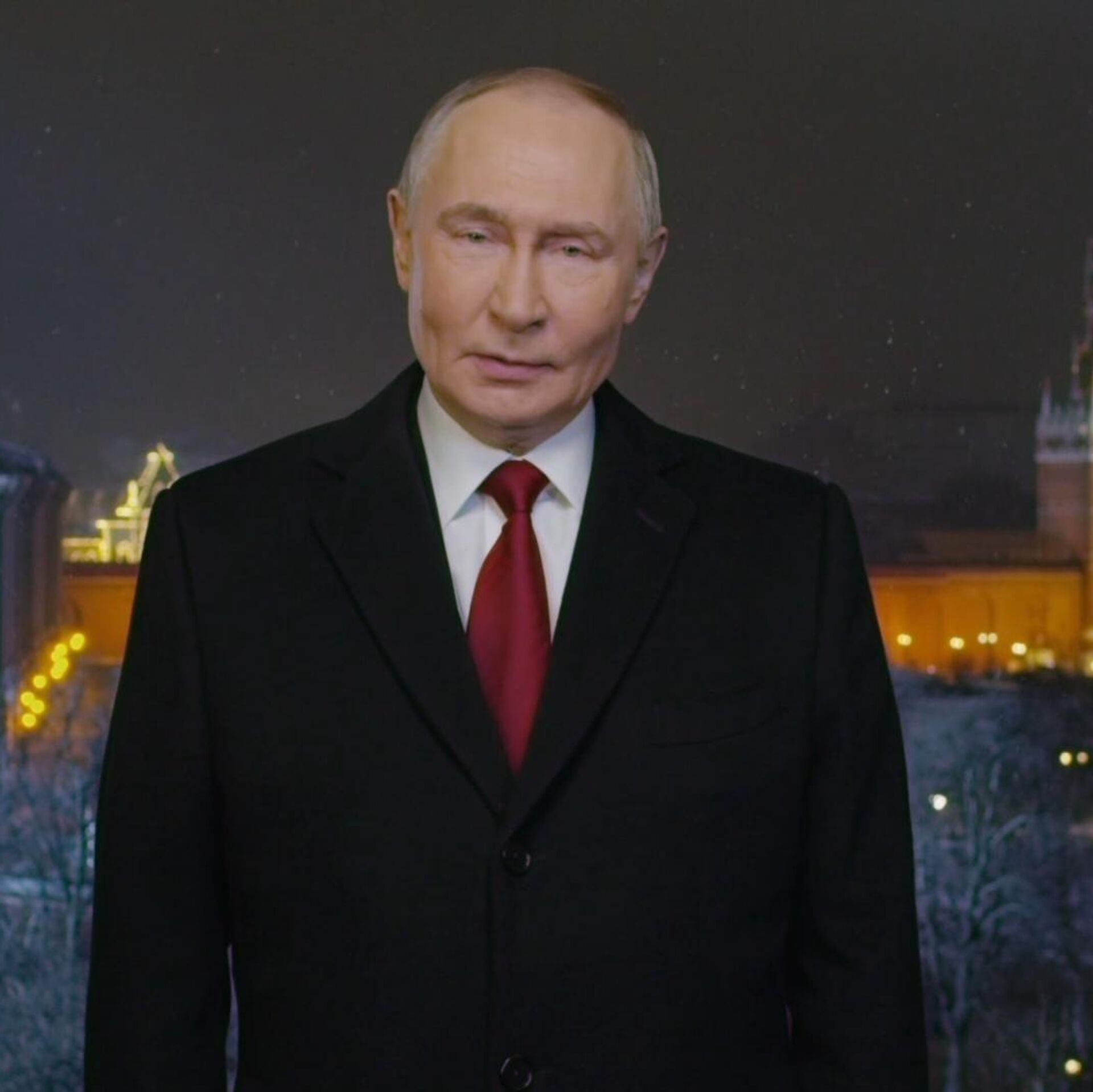 俄罗斯总统弗拉基米尔·普京在克里姆林宫向俄罗斯公民发表传统的新年致辞。普京恭贺即将到来的2026年。此次俄总统的新年致辞持续了3分20秒。 2026年1月1日, 俄罗斯卫星通讯社