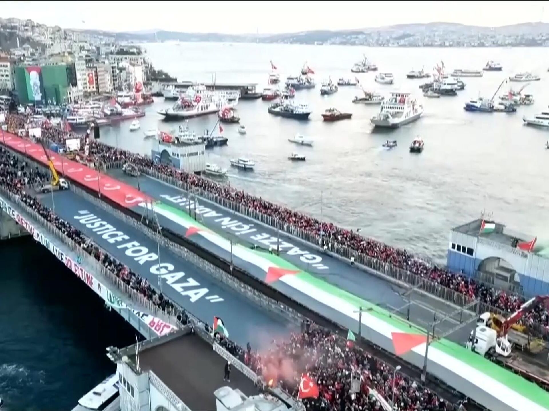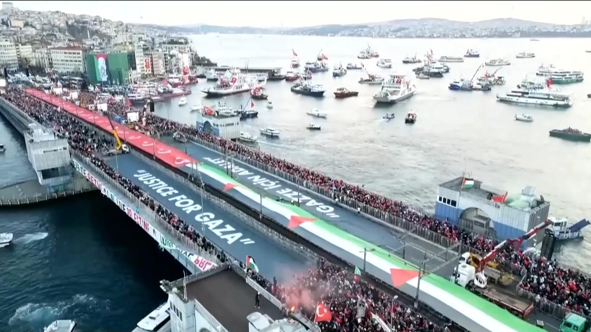 据土耳其《自由报》报道,周四(1月1日)在伊斯坦布尔市中心举行的声援巴勒斯坦游行,有超过52万人参加。