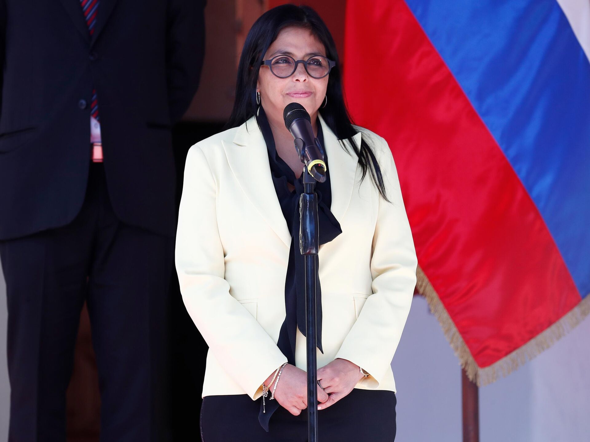 委内瑞拉代总统德尔西•罗德里格斯指出,如果她有机会访问华盛顿,她将昂首挺胸,手持委内瑞拉国旗。 2026年1月16日, 俄罗斯卫星通讯社