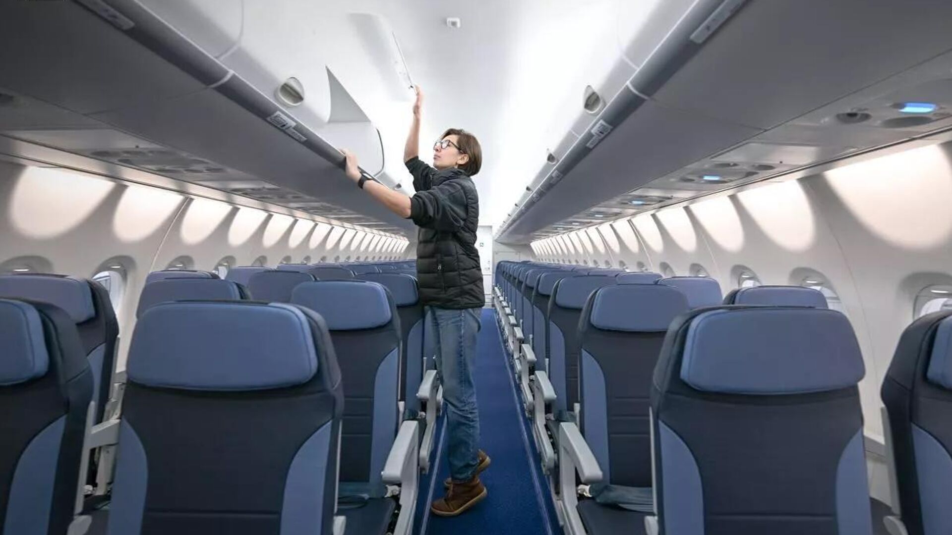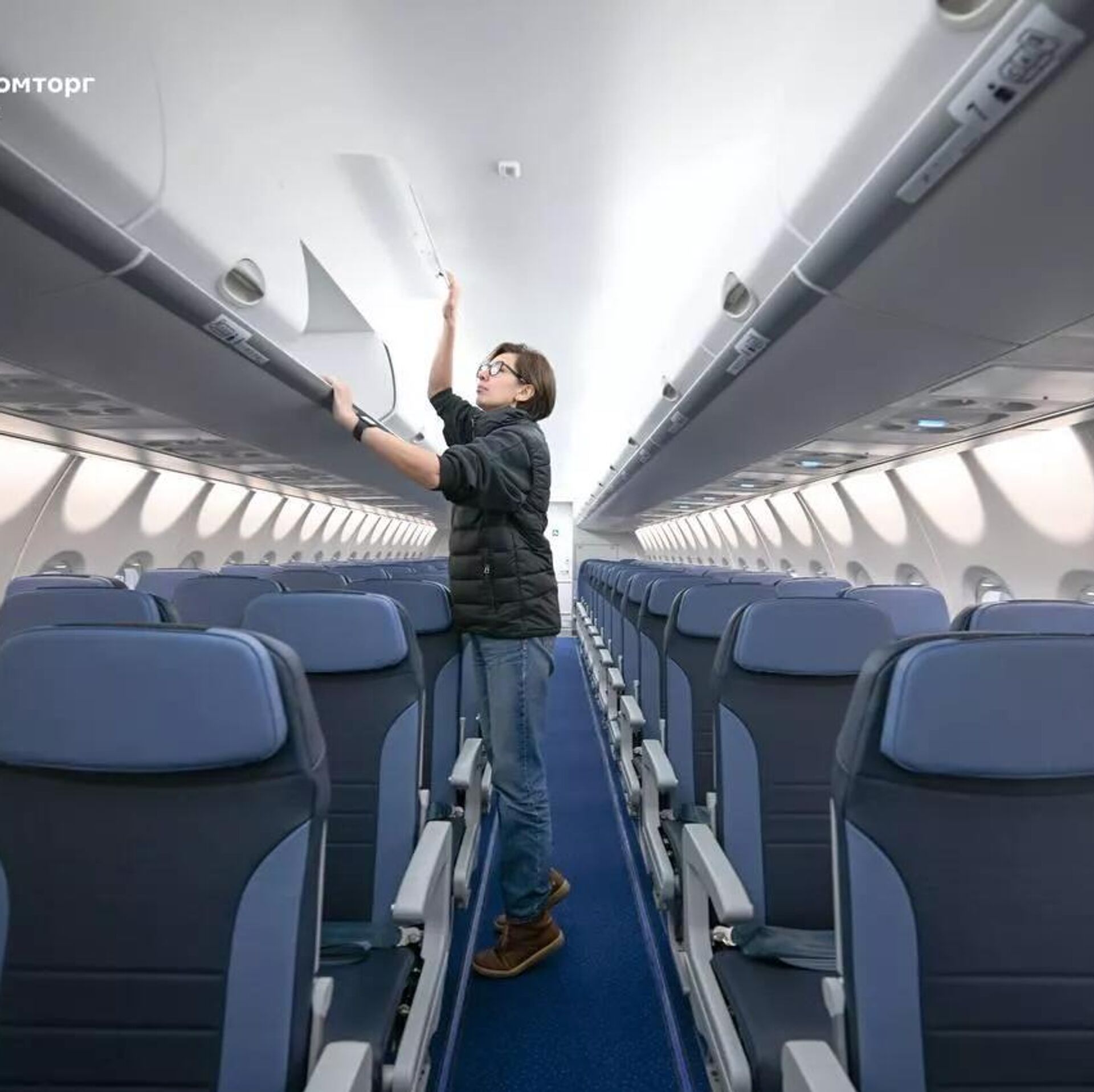 俄工贸部指出,机舱内部装饰件和座椅均由俄罗斯公司制造。该飞机可容纳100名乘客。前排座椅属于“舒适舱”,拥有更宽敞的空间。