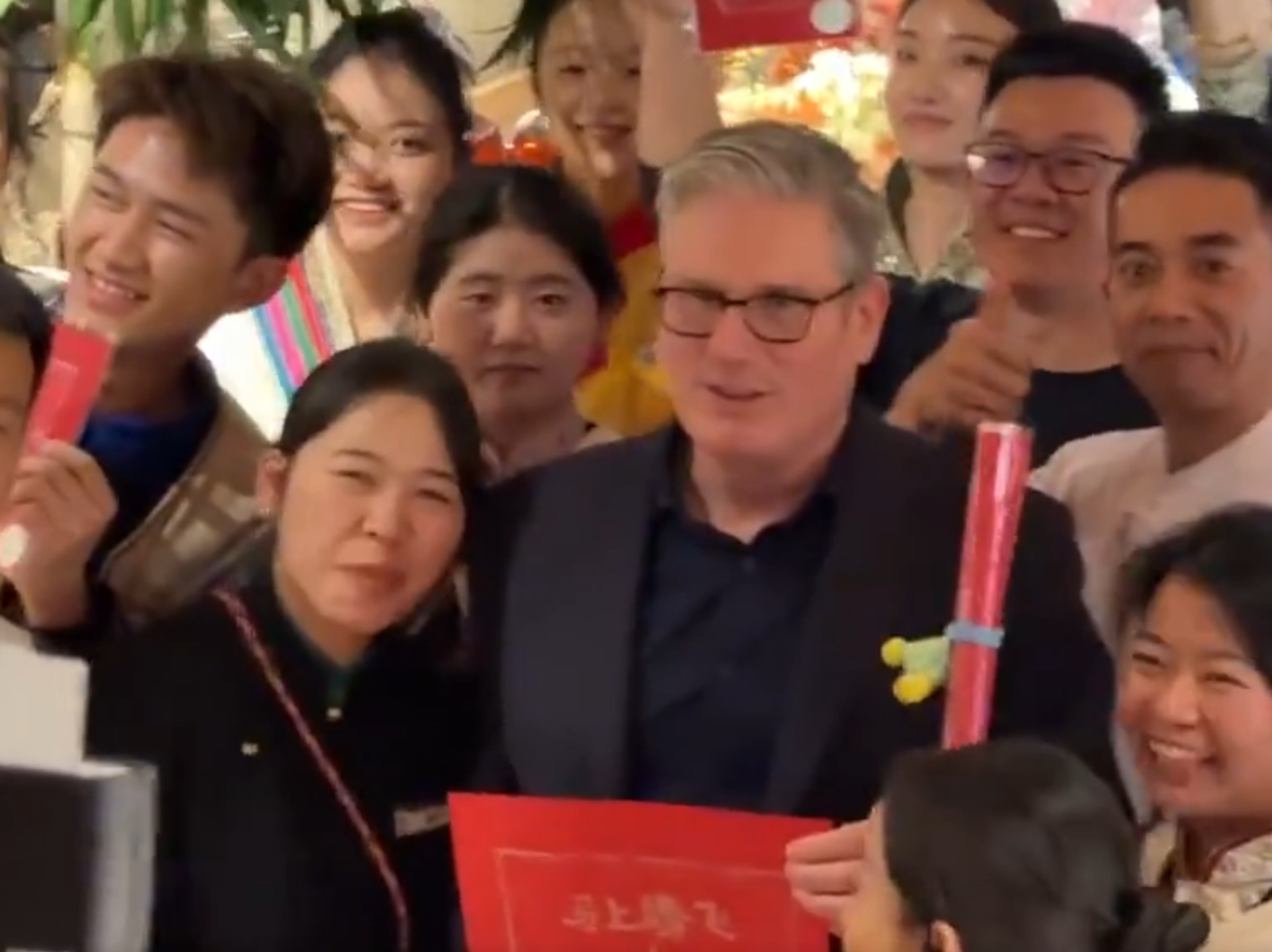 这家在中国颇具知名度的网红连锁云南菜餐厅,于周三晚间通过其社交媒体账号发布了一段视频。画面中,到访北京三里屯分店用餐的英国首相斯塔默,在离店前与员工亲切合影留念。视频里,店员向斯塔默赠送了一张写有“马年腾飞”字样的云南传统祈福甲马纸,众人合影时齐声送上“新年快乐”的祝福。