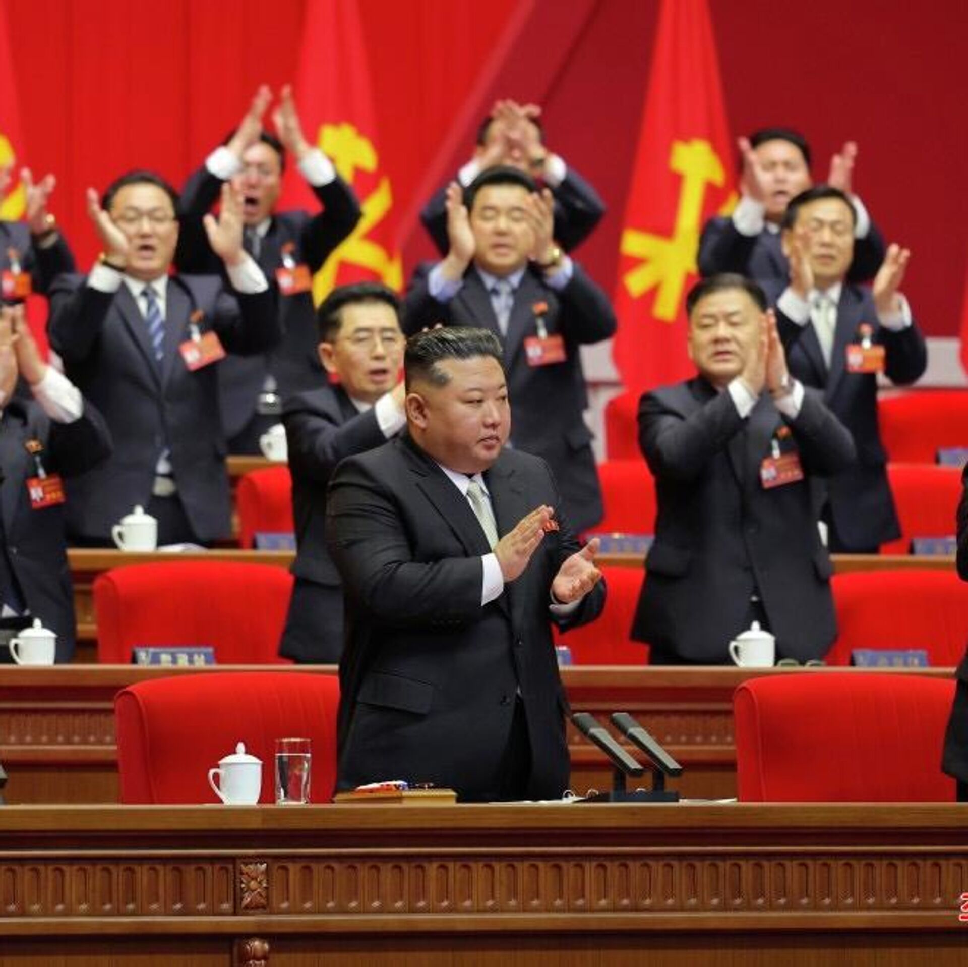据朝中社报道,朝鲜劳动党第九次代表大会第四天会议于2月22日举行。当天会议讨论并修改了朝鲜劳动党章程,选举了朝鲜劳动党第九届中央领导机构成员,金正恩当选朝鲜劳动党总书记。 2026年2月23日, 俄罗斯卫星通讯社