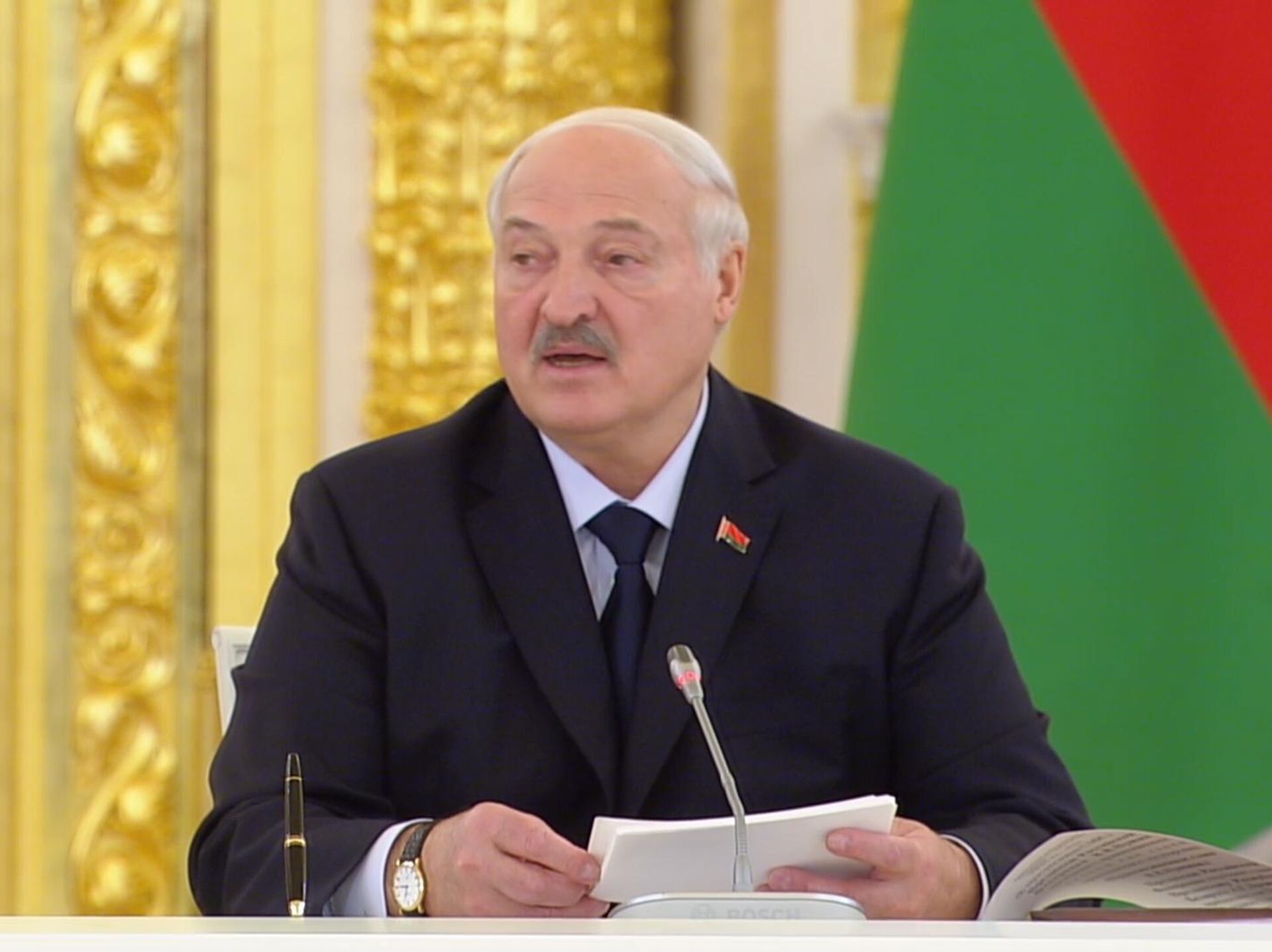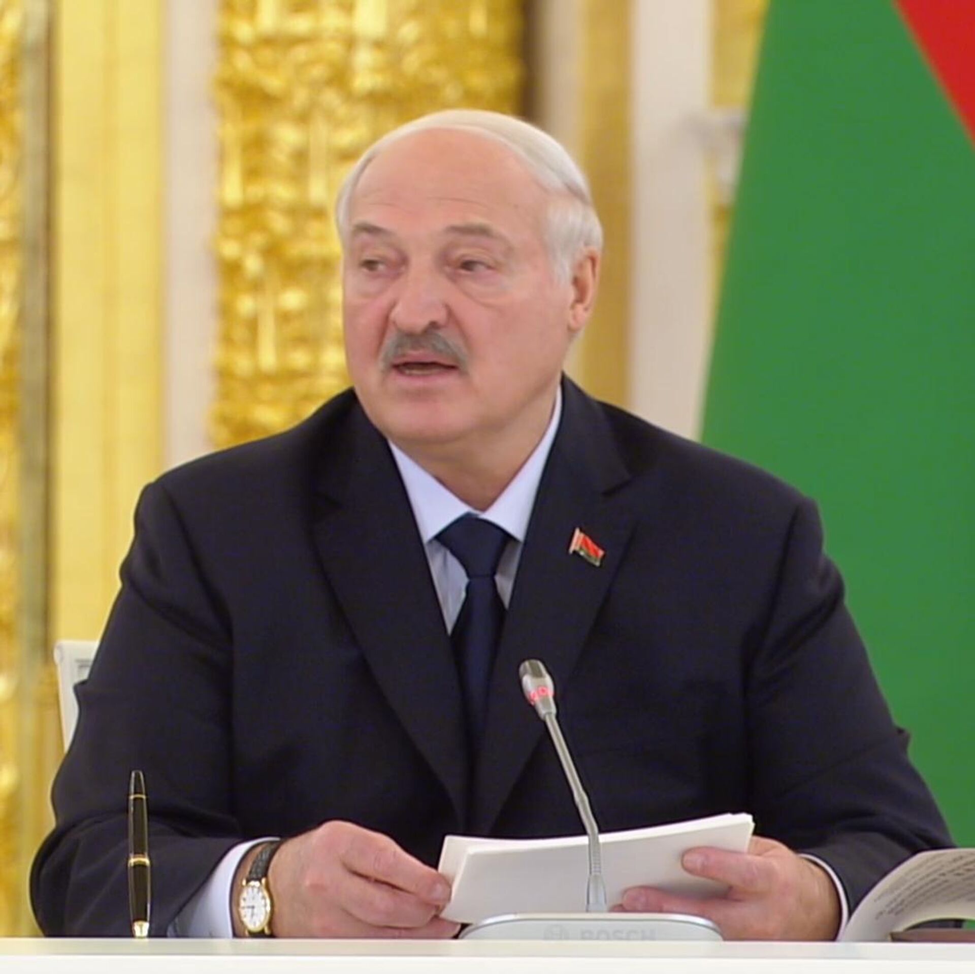 卢卡申科在联盟国家最高国务委员会会议上说:“地缘政治格局客观要求我们做好准备,共同应对任何挑战。联盟国家安全保障条约已开始实际落实。正如我们与你商定的那样,‘榛树’导弹系统已于(去年)12月在白俄罗斯进入战斗值班。”