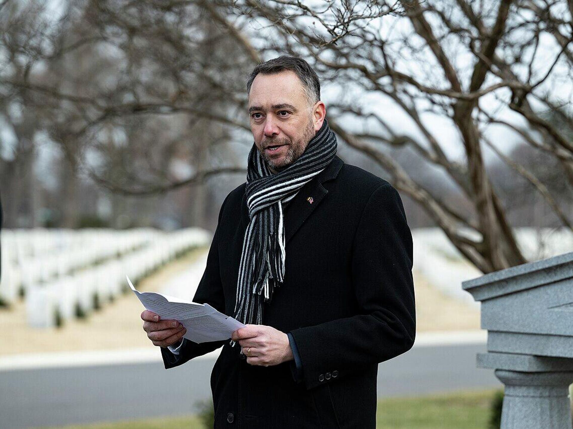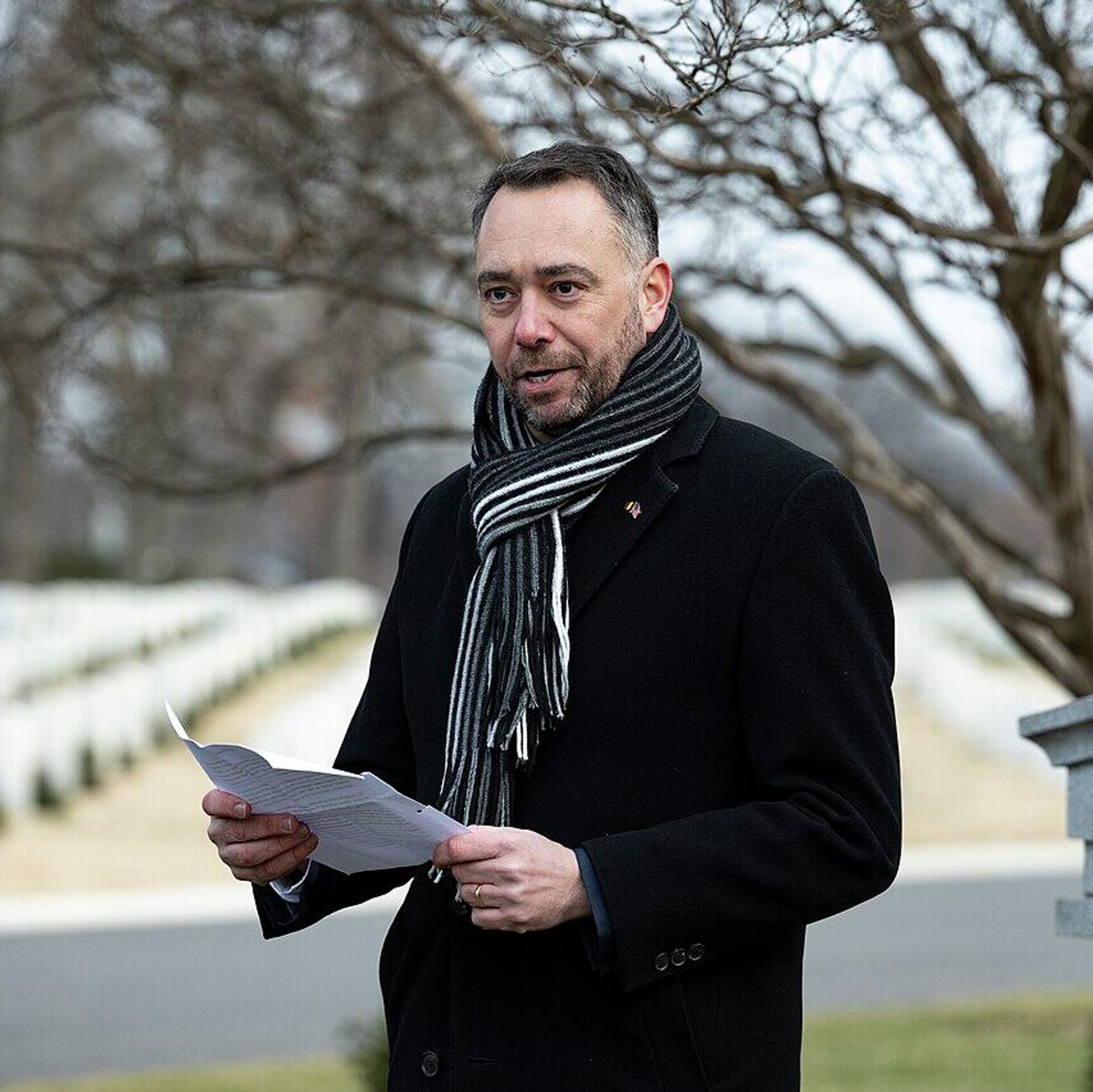© 照片 : Arlington National Cemetery / Public Domain / Belgian Deputy Prime Minister and Minister of Foreign Affairs Maxime Prévot visits for 81st Battle of the Bulge Commemoration Ceremony, Arlington National Cemetery, January 5, 2026 - 39